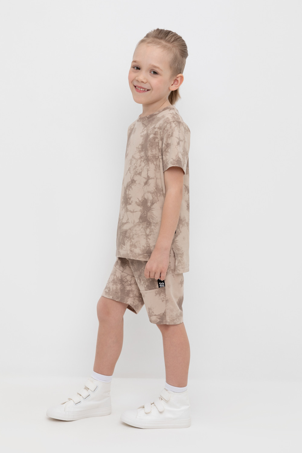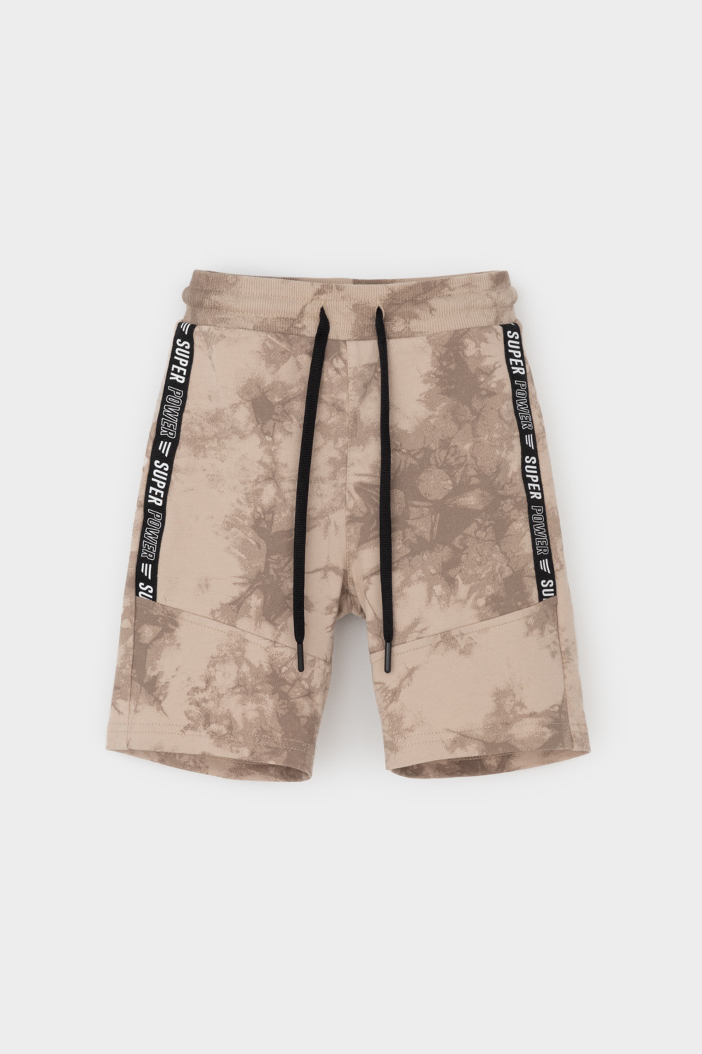 Трикотажные шорты для мальчика из петельчатого футера диагональ. Эластичный пояс на резинке регулируется по ширине с помощью шнурка.