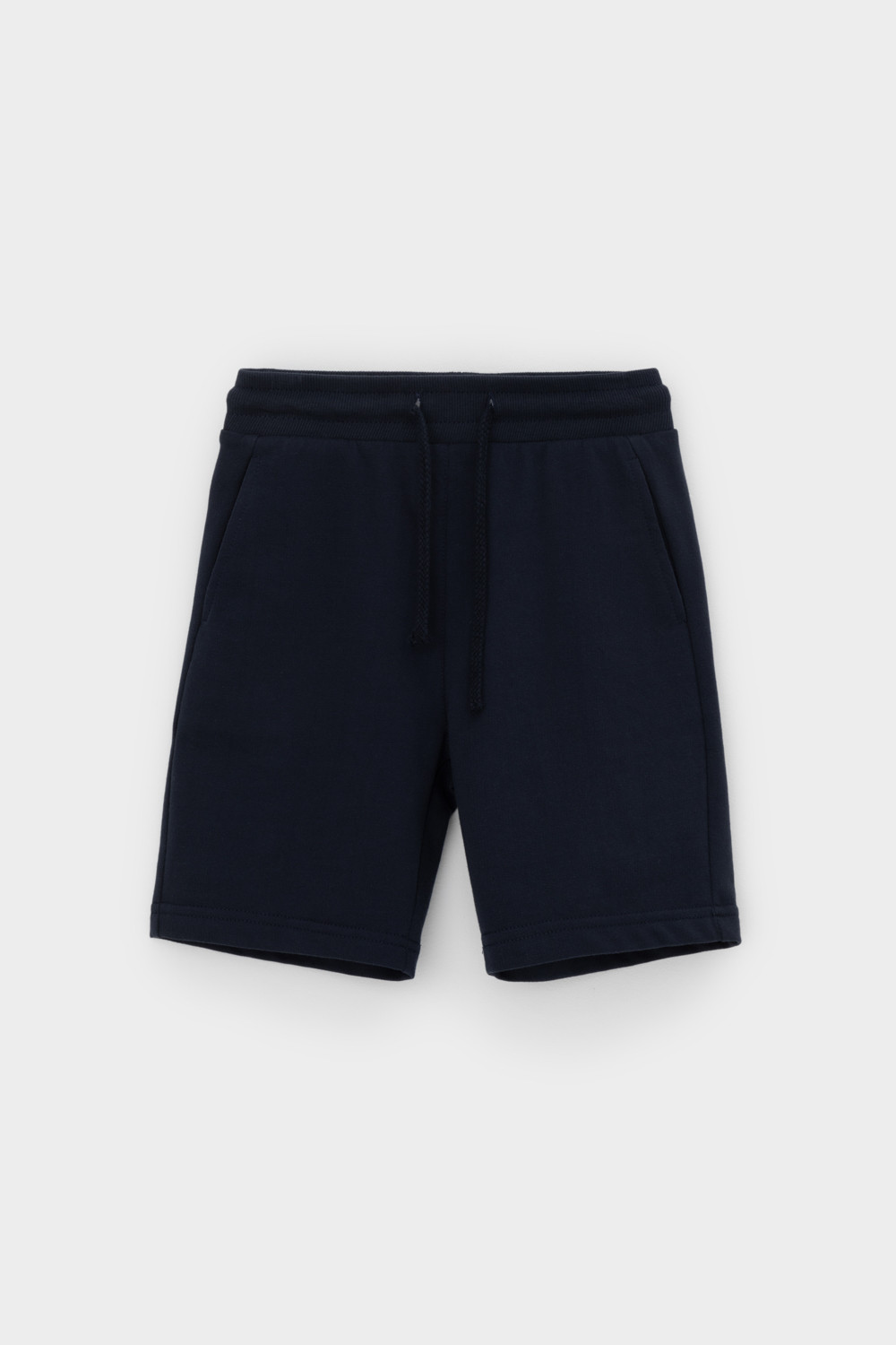 Трикотажные шорты для мальчика из высококачественного хлопкового трикотажа футер петля. Эластичный пояс на резинке регулируется по ширине с помощью шнура. По бокам два удобных кармана.