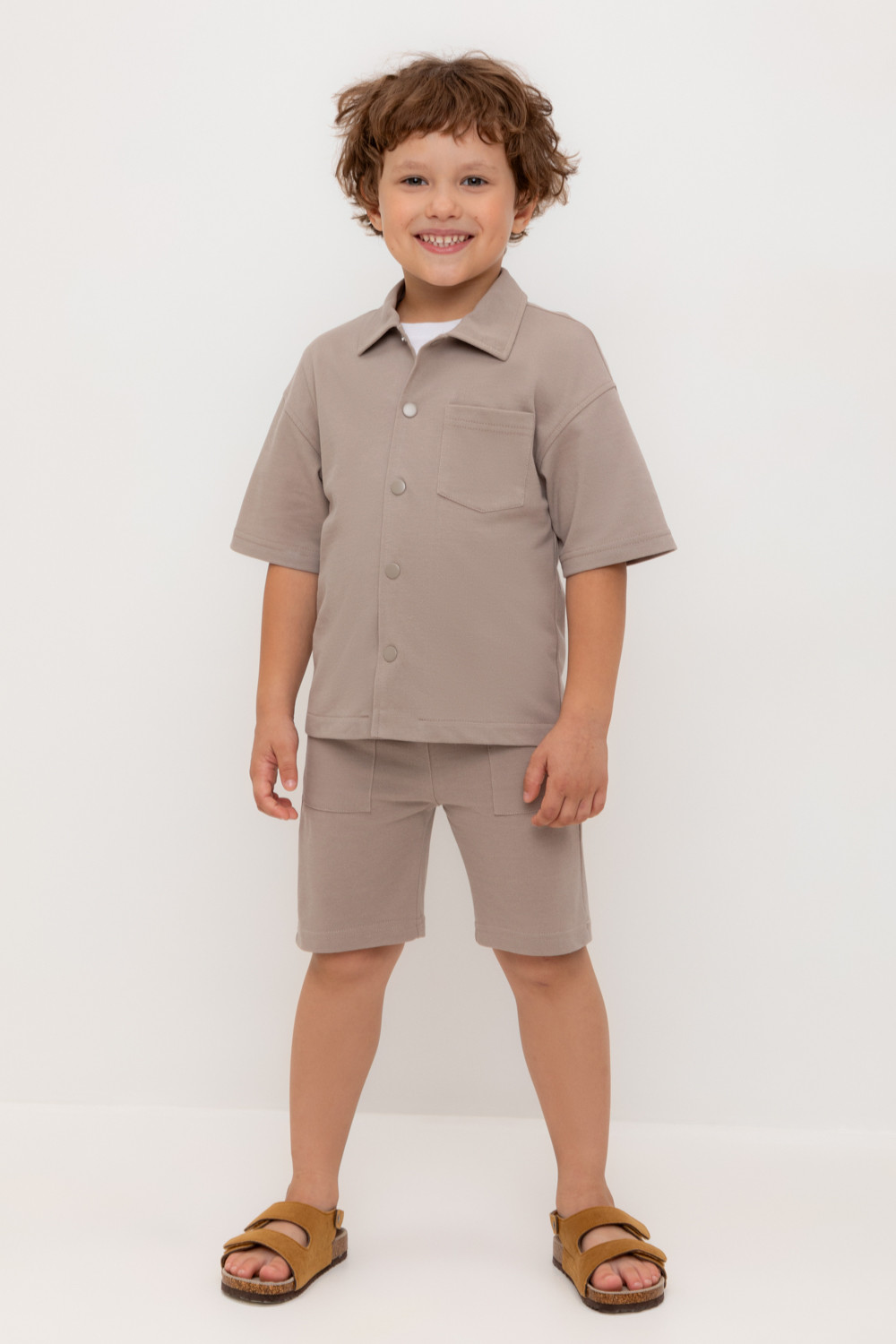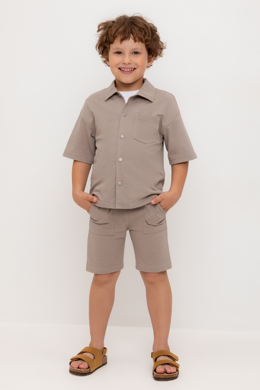 Трикотажные шорты для мальчика из высококачественного хлопкового трикотажа пике. Эластичный пояс на резинке регулируется по ширине с помощью шнура. По бокам два удобных кармана.