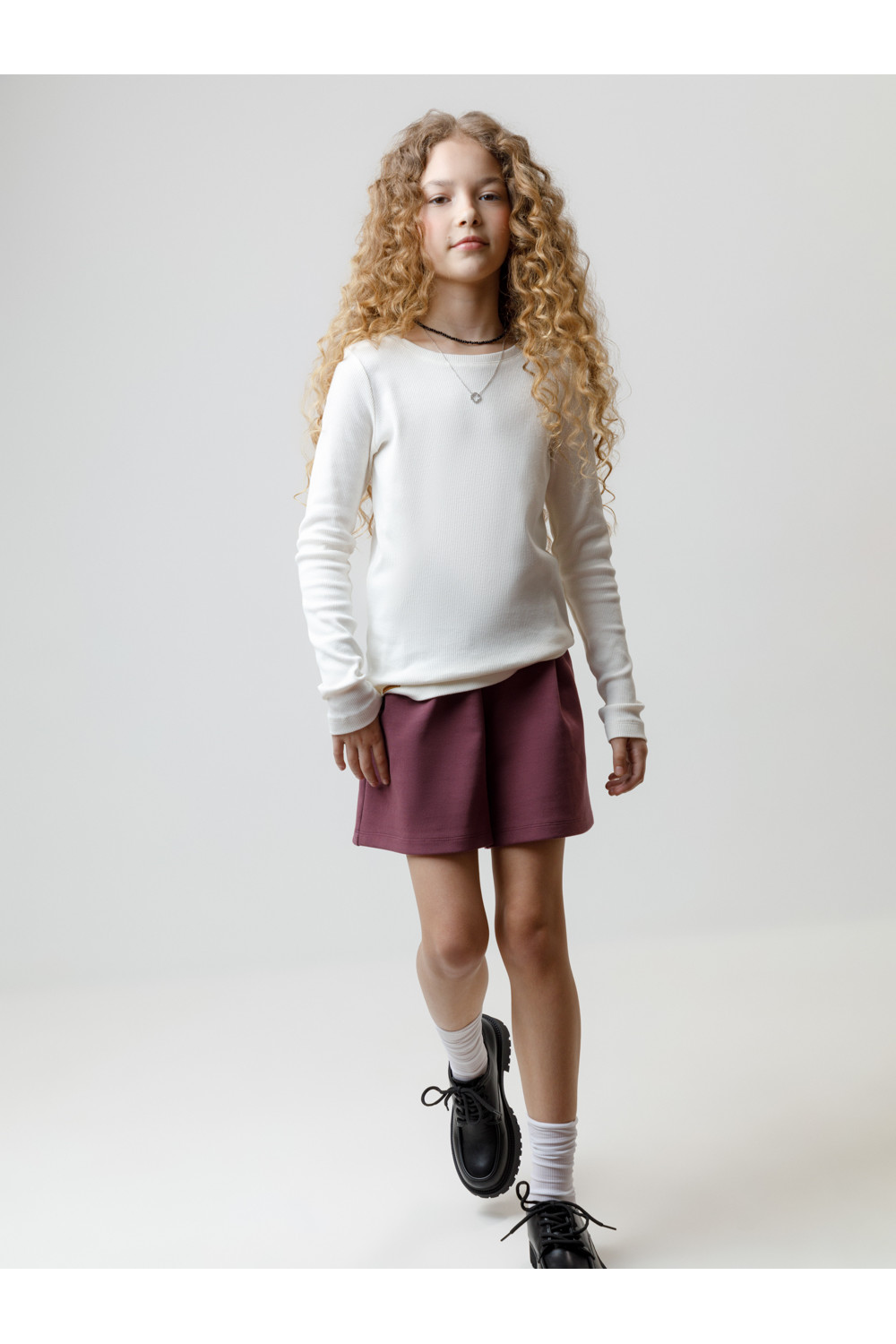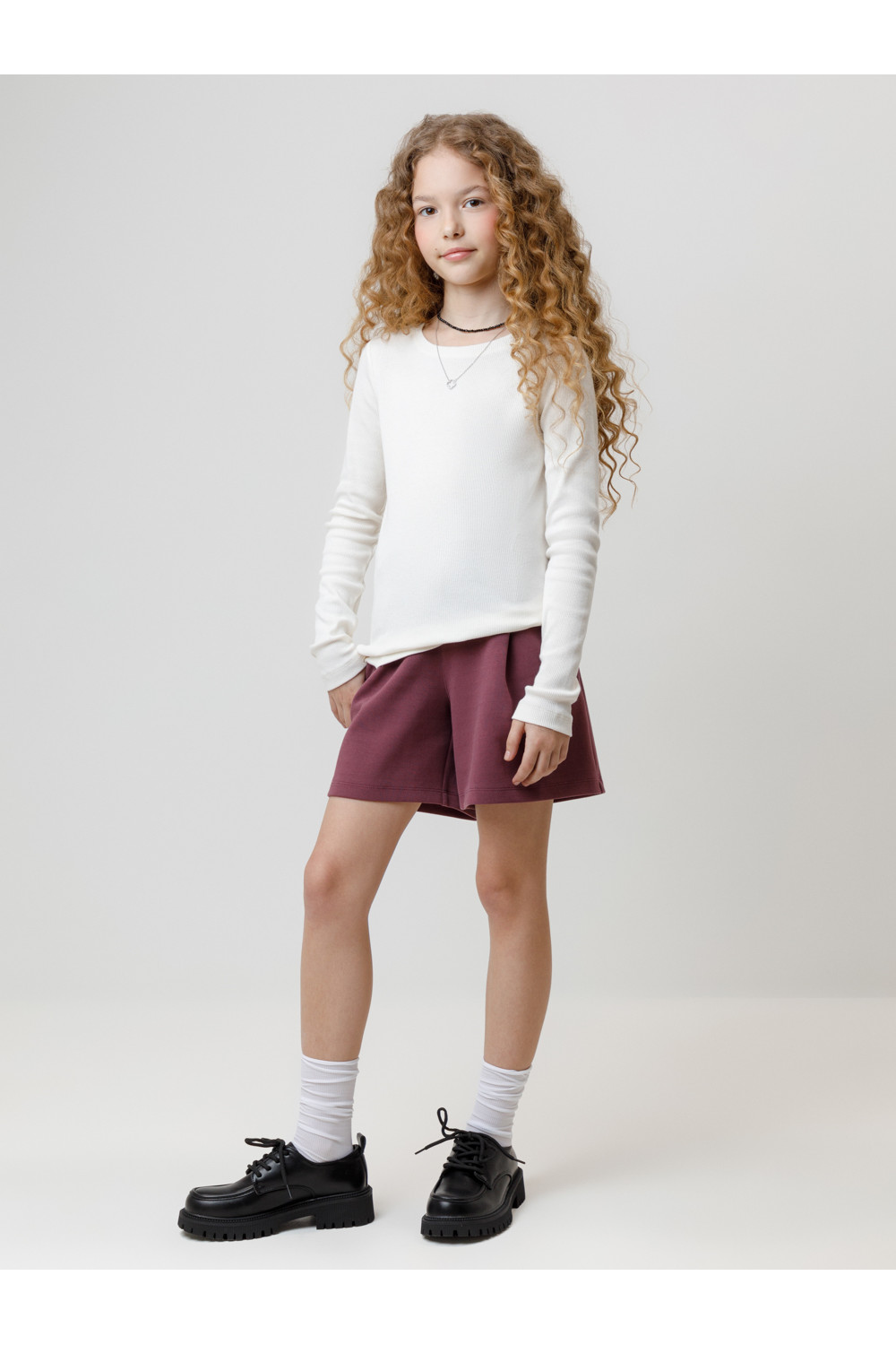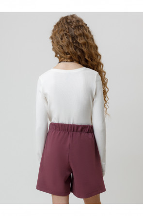 Шорты с эластичным поясом для девочки. Изготовлены из премиального трикотажного полотна DOUBLE FACE. По бокам два удобных кармана. Спереди складки. Изделие сохраняет цвет и форму после многократных стирок. Все трикотажные полотна производятся в соответствии с нормами швейцарского сертификата ЭкоТекс.