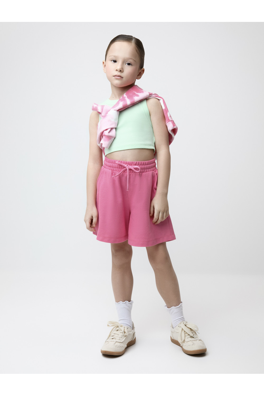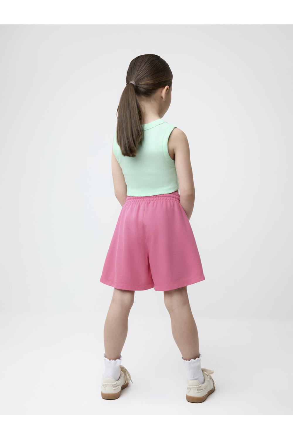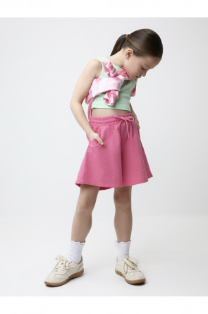 Шорты однотонные для девочки с мягким поясом на резинке. Изготовлены из высококачественного трикотажного полотна пике. Изделие сохраняет цвет и форму после многократных стирок. Все трикотажные полотна производятся в соответствии с нормами швейцарского сертификата ЭкоТекс.