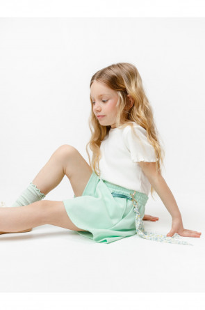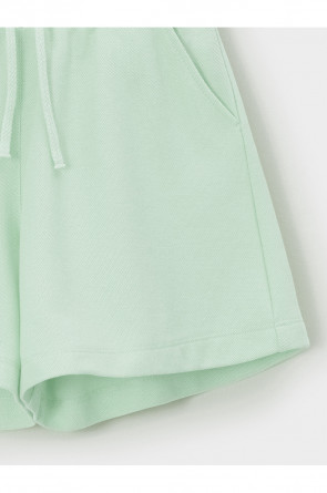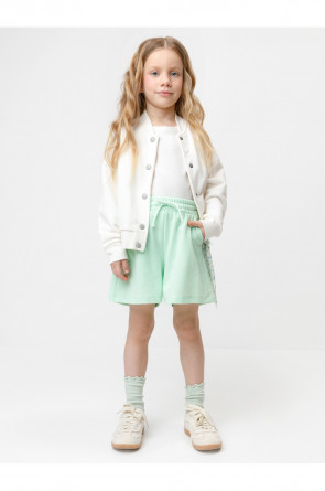 Шорты однотонные для девочки с мягким поясом на резинке. Изготовлены из высококачественного трикотажного полотна пике. Изделие сохраняет цвет и форму после многократных стирок. Все трикотажные полотна производятся в соответствии с нормами швейцарского сертификата ЭкоТекс.