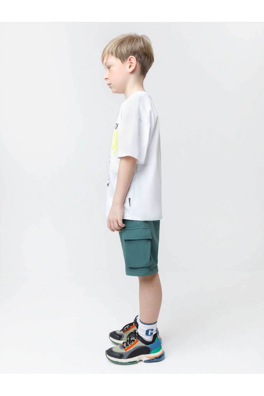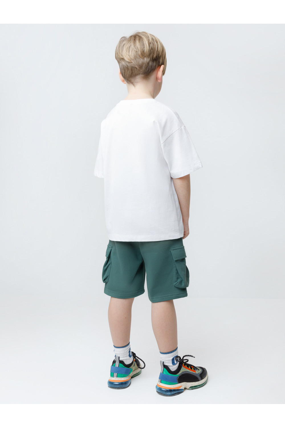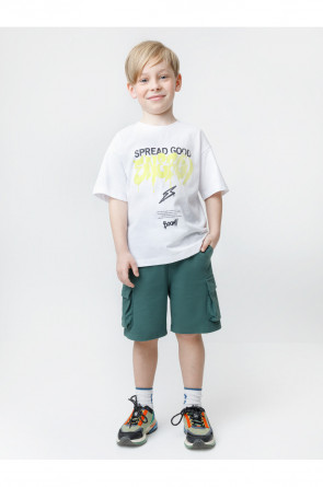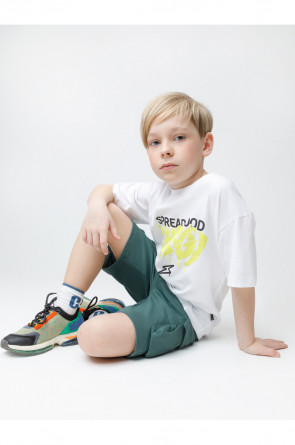Трикотажные шорты для мальчика из футера трёхнитки. Эластичный пояс на резинке регулируется по ширине с помощью шнурка, по бокам карманы. Изделие сохраняет цвет и форму после многократных стирок. Все трикотажные полотна производятся в соответствии с нормами швейцарского сертификата ЭкоТекс.