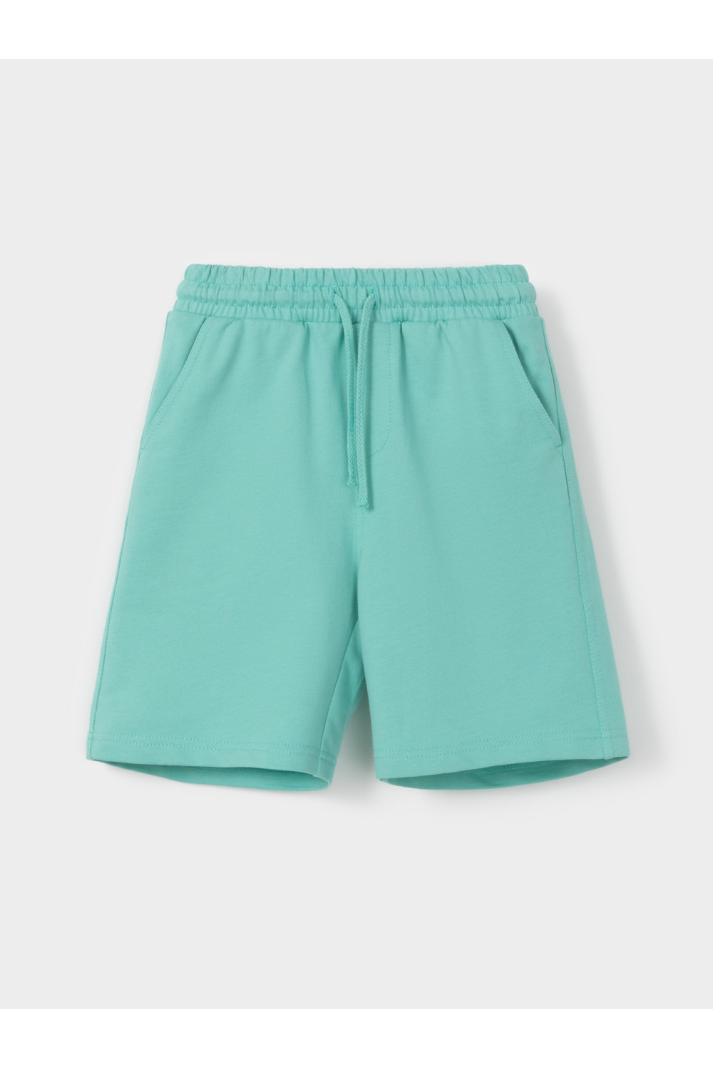 Лёгкие шорты для мальчика из гладкого трикотажа супрем. Эластичный пояс на резинке регулируется по ширине с помощью шнурка. Изделие сохраняет цвет и форму после многократных стирок. Все трикотажные полотна производятся в соответствии с нормами швейцарского сертификата ЭкоТекс.