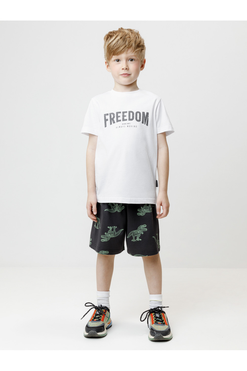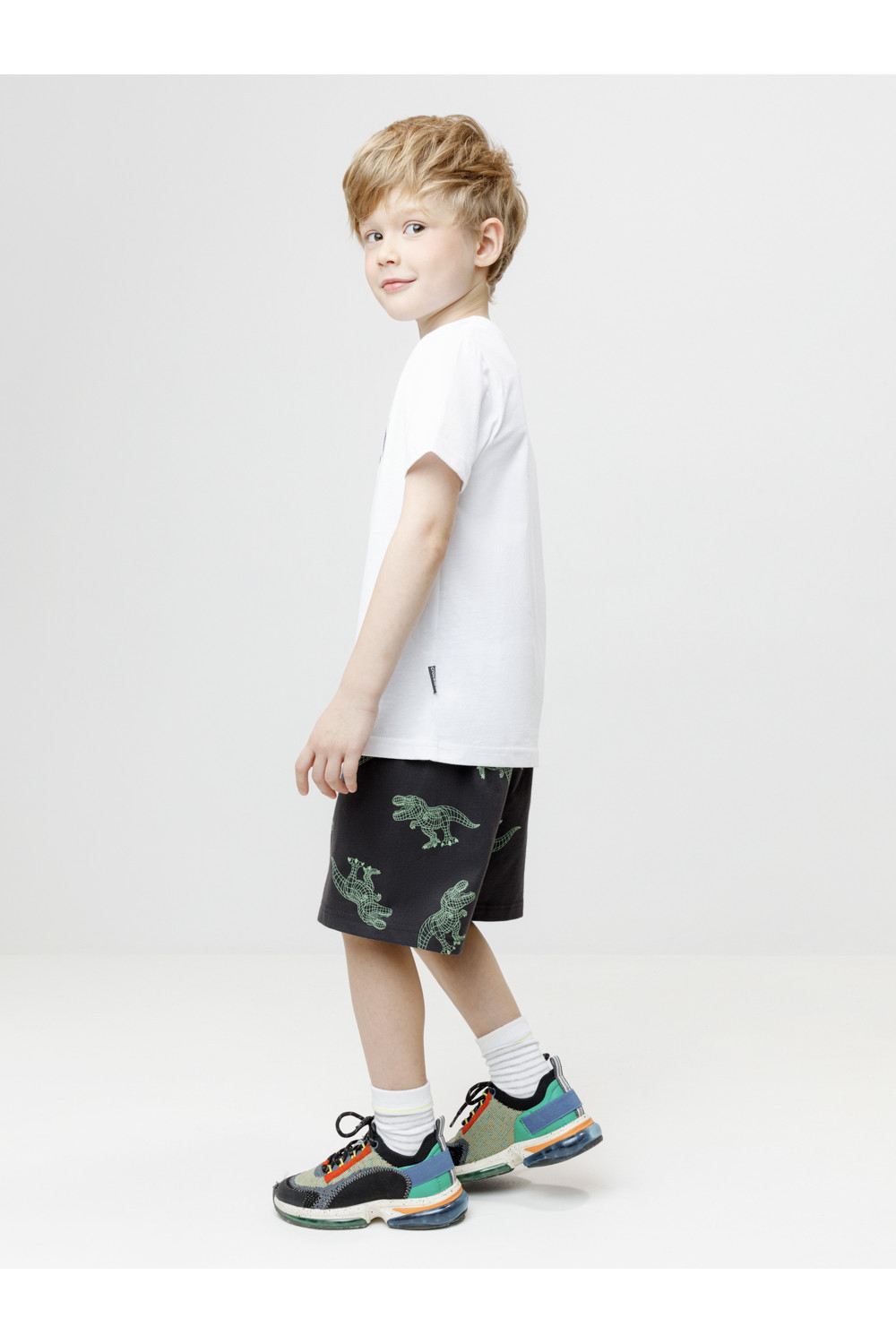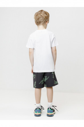 Лёгкие шорты для мальчика из гладкого трикотажа супрем. Эластичный пояс на резинке регулируется по ширине с помощью шнурка. Изделие сохраняет цвет и форму после многократных стирок. Все трикотажные полотна производятся в соответствии с нормами швейцарского сертификата ЭкоТекс.