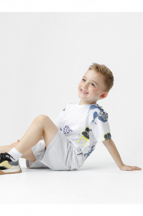 Лёгкие шорты для мальчика из гладкого трикотажа супрем. Эластичный пояс на резинке регулируется по ширине с помощью шнурка. Изделие сохраняет цвет и форму после многократных стирок. Все трикотажные полотна производятся в соответствии с нормами швейцарского сертификата ЭкоТекс.