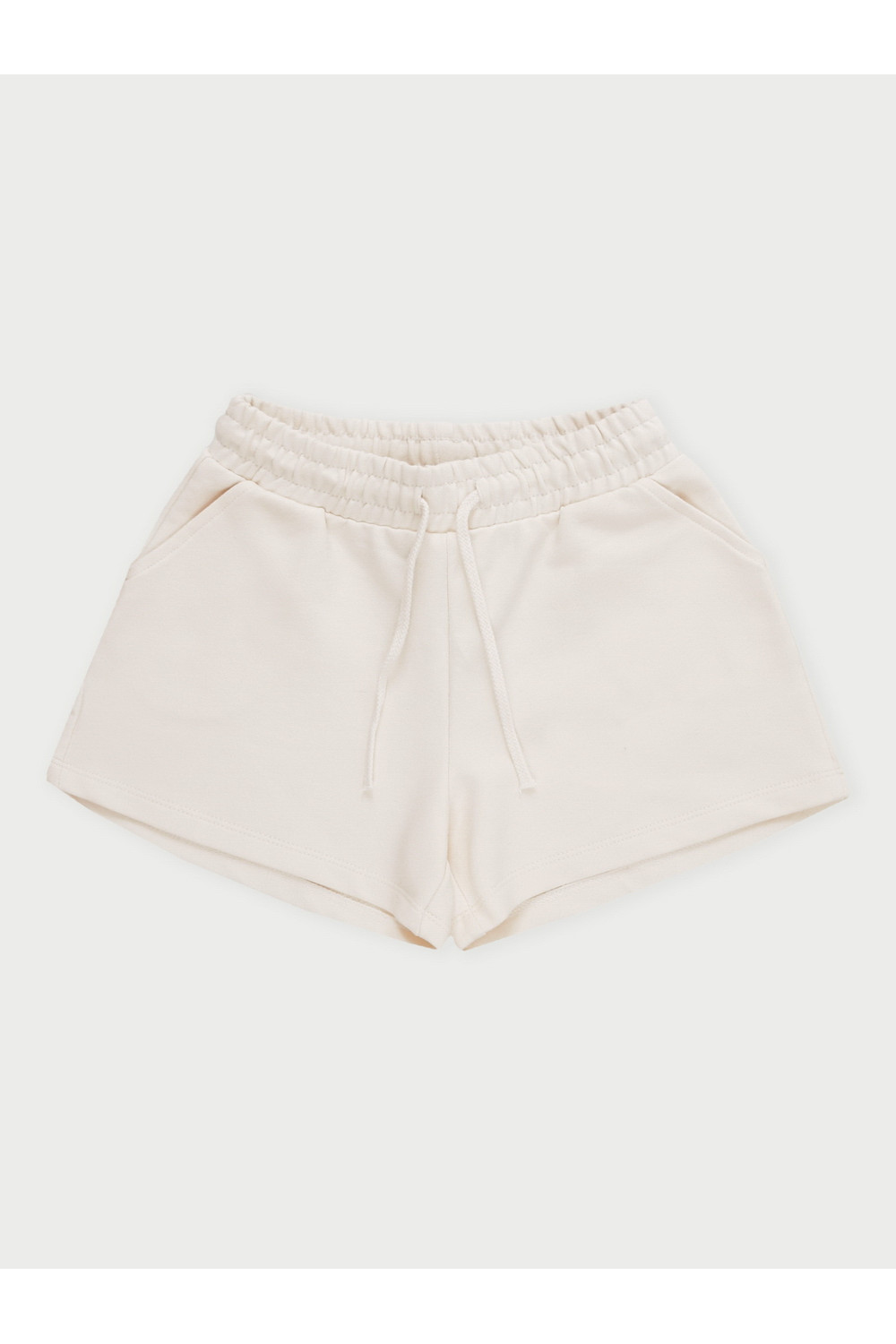 Шорты для девочки из однотонного футера с добавлением спандекса, который придаёт эластичность. Модель с мягким поясом на резинке и регулировкой по талии с помощью шнурка. Изделие сохраняет цвет и форму после многократных стирок. Все трикотажные полотна производятся в соответствии с нормами швейцарского сертификата ЭкоТекс.