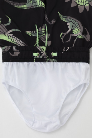 Плавки для мальчика с эластичной резинкой в поясе. Регулируются по ширине с помощью шнурка. Внутри подклад. Украшены набивным рисунком.