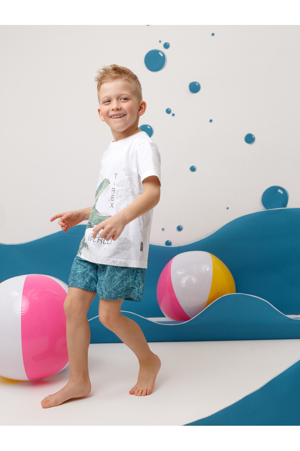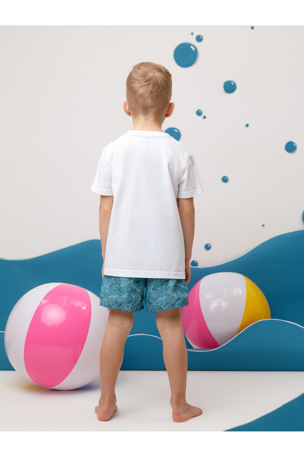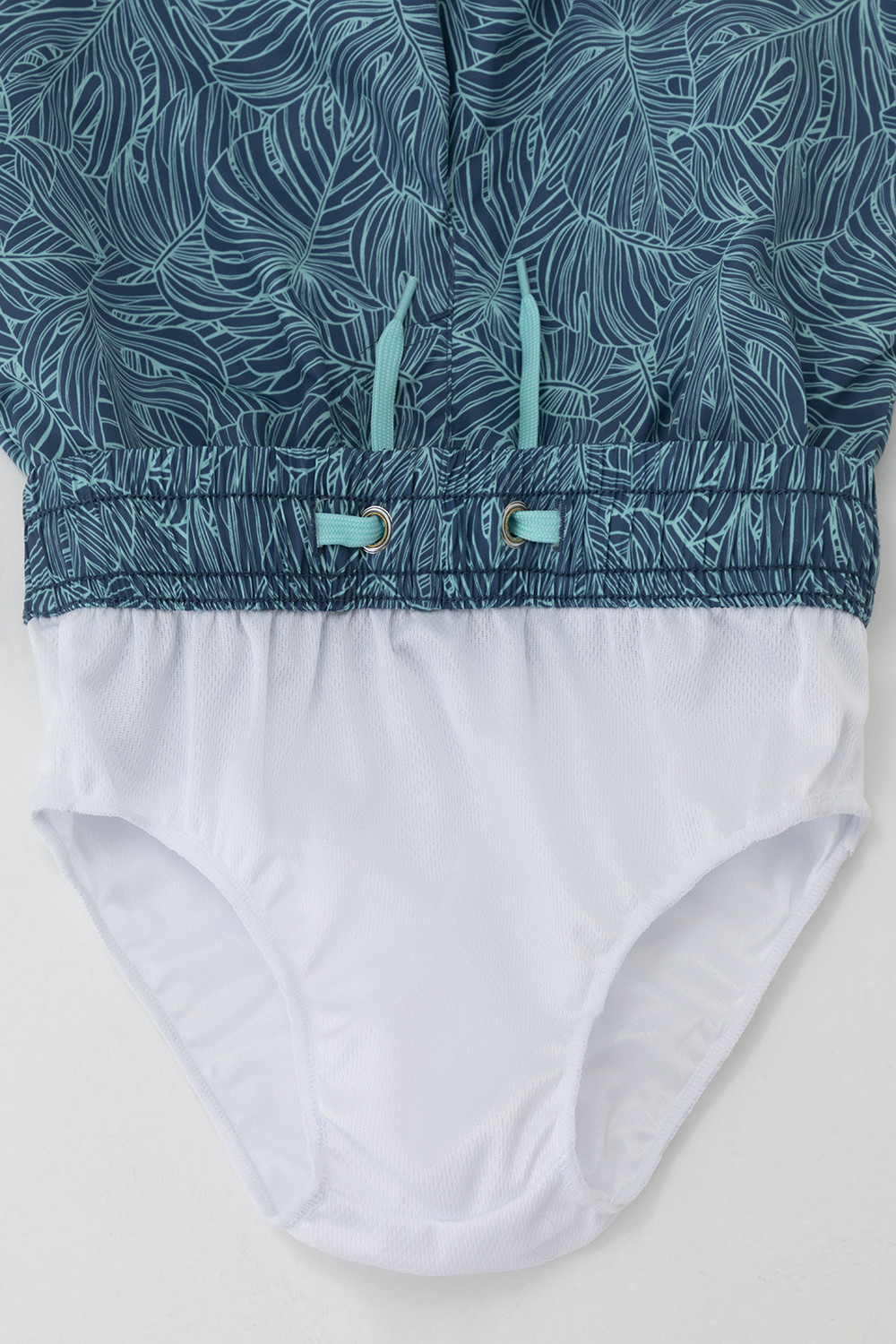 Плавки для мальчика с эластичной резинкой в поясе. Регулируются по ширине с помощью шнурка. Внутри подклад. Украшены набивным рисунком.