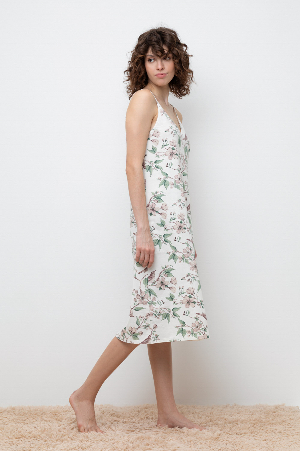 Элегантная сорочка на бретелях для комфортного сна из 100% натурального хлопка. На груди декоративные пуговицы. Гладкий материал приятен к телу и позволяет коже дышать.