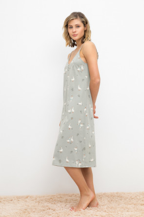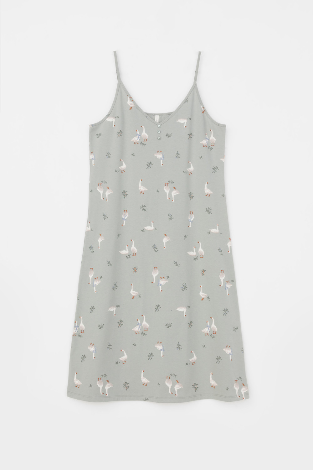 Элегантная сорочка на бретелях для комфортного сна из 100% натурального хлопка. На груди декоративные пуговицы. Гладкий материал приятен к телу и позволяет коже дышать.