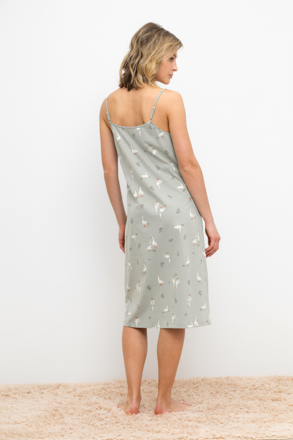 Элегантная сорочка на бретелях для комфортного сна из 100% натурального хлопка. На груди декоративные пуговицы. Гладкий материал приятен к телу и позволяет коже дышать.