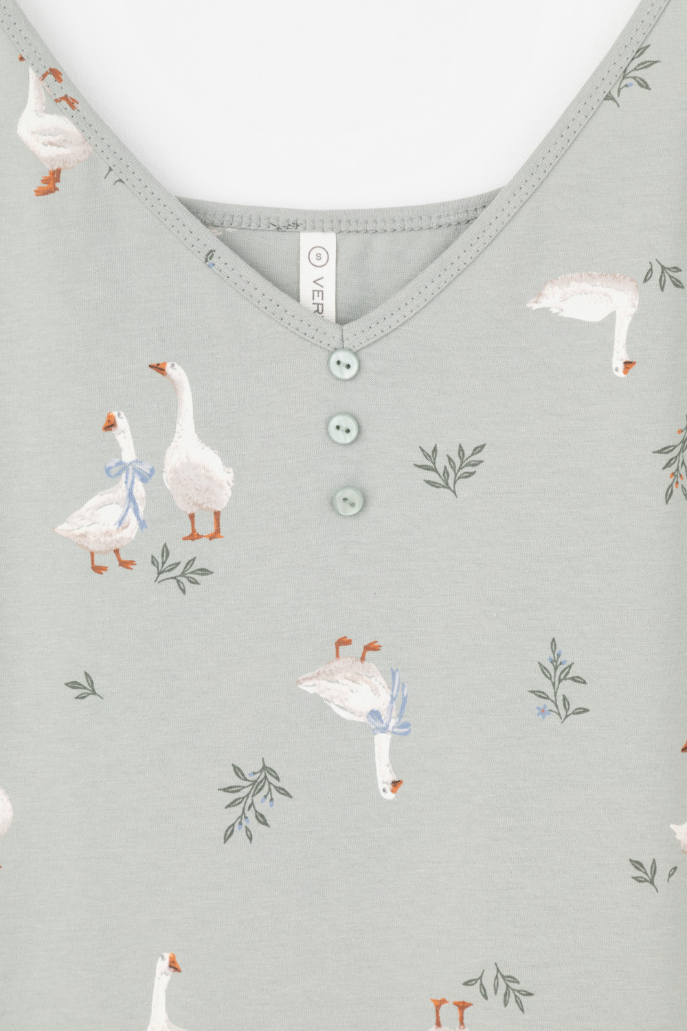 Элегантная сорочка на бретелях для комфортного сна из 100% натурального хлопка. На груди декоративные пуговицы. Гладкий материал приятен к телу и позволяет коже дышать.