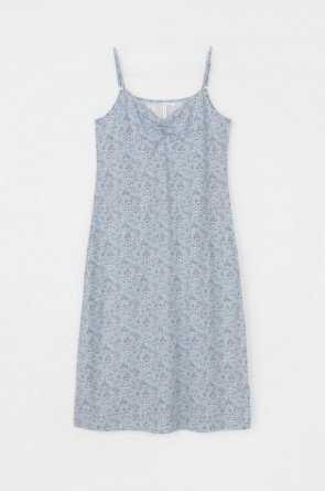 Элегантная сорочка на бретелях из 100% натурального хлопка для комфортного сна. Модель из трикотажного полотна супрем с набивным нежным рисунком с регулируемыми бретелями. На груди сборка. Гладкий материал приятен к телу и позволяет коже дышать.