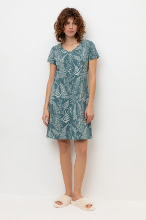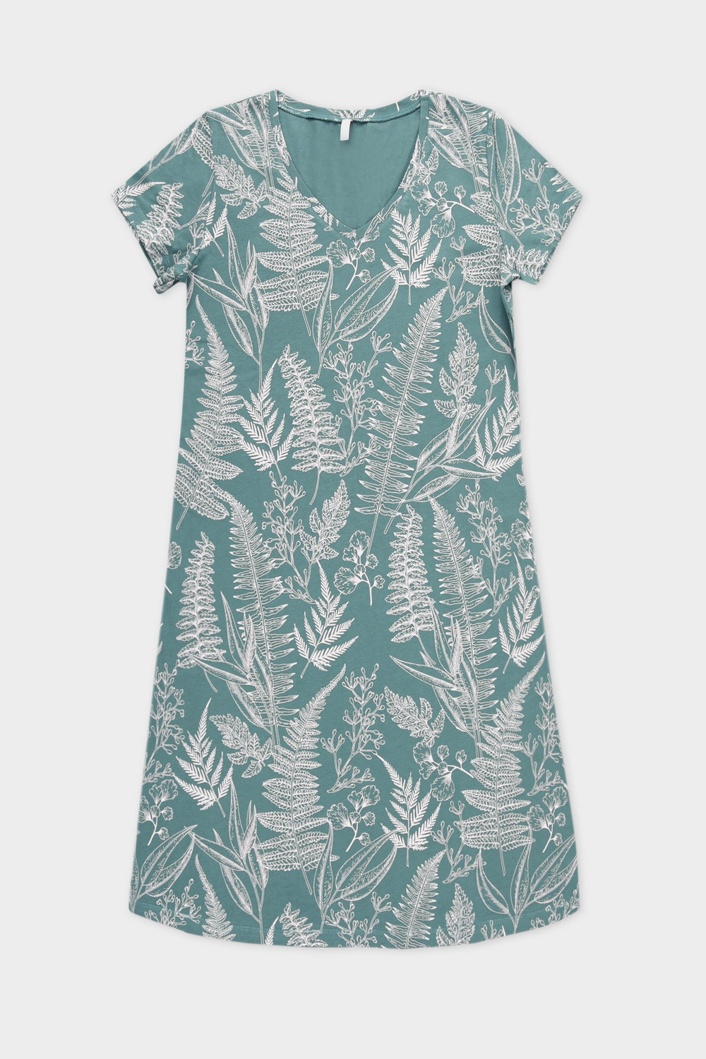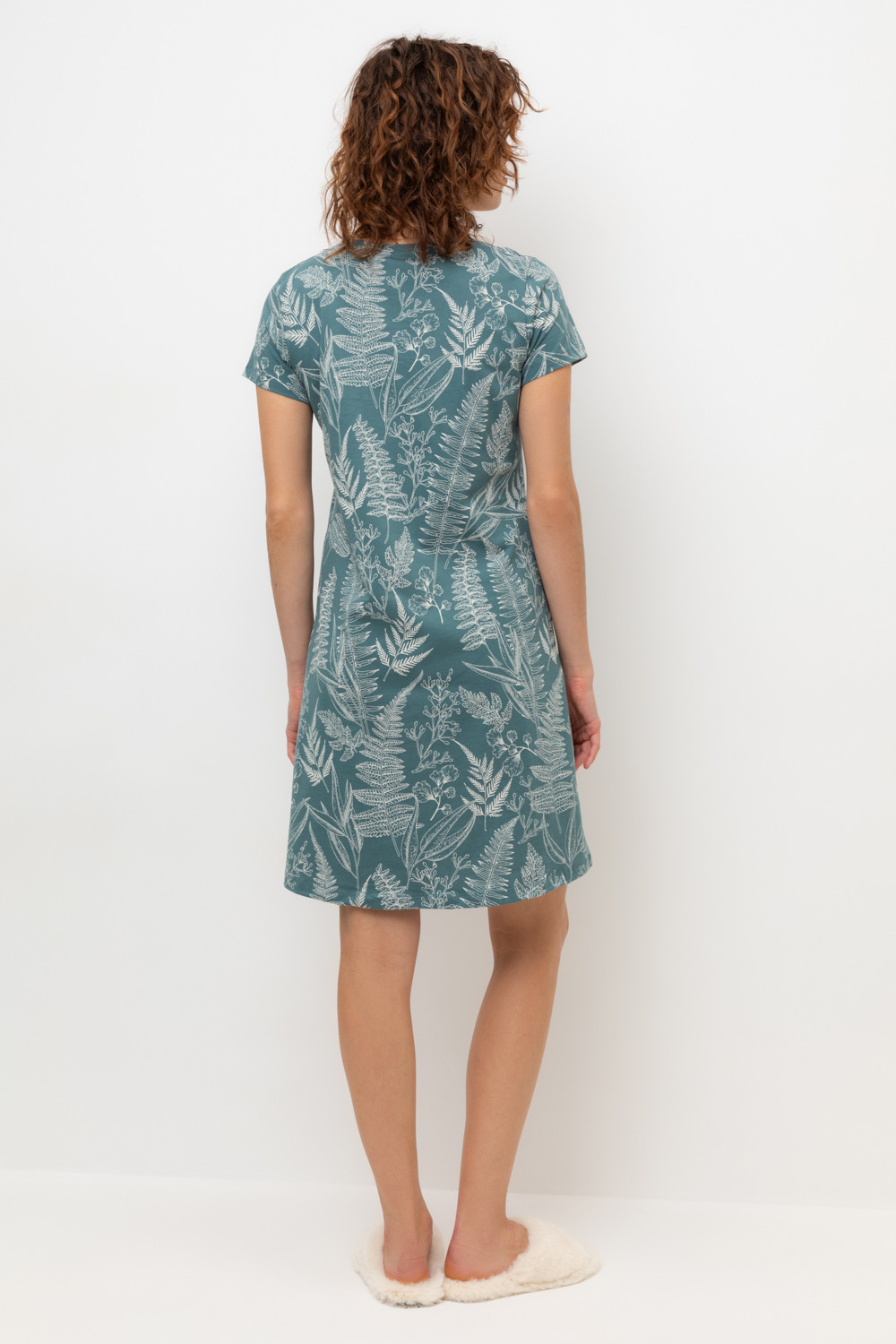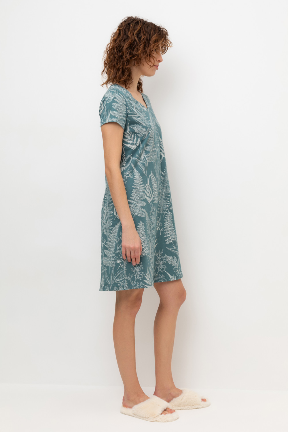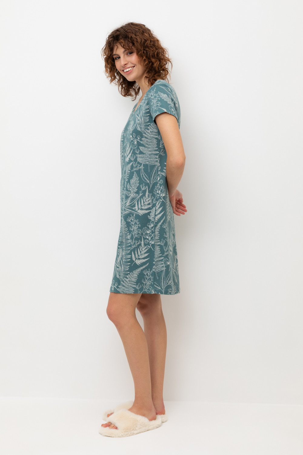 Уютная женская сорочка с короткими рукавами из 100% натурального хлопка. Выполнена из набивного трикотажа супрем с нежным рисунком. Все трикотажные полотна производятся в соответствии с нормами Швейцарского сертификата ЭкоТекс. Сделано в России