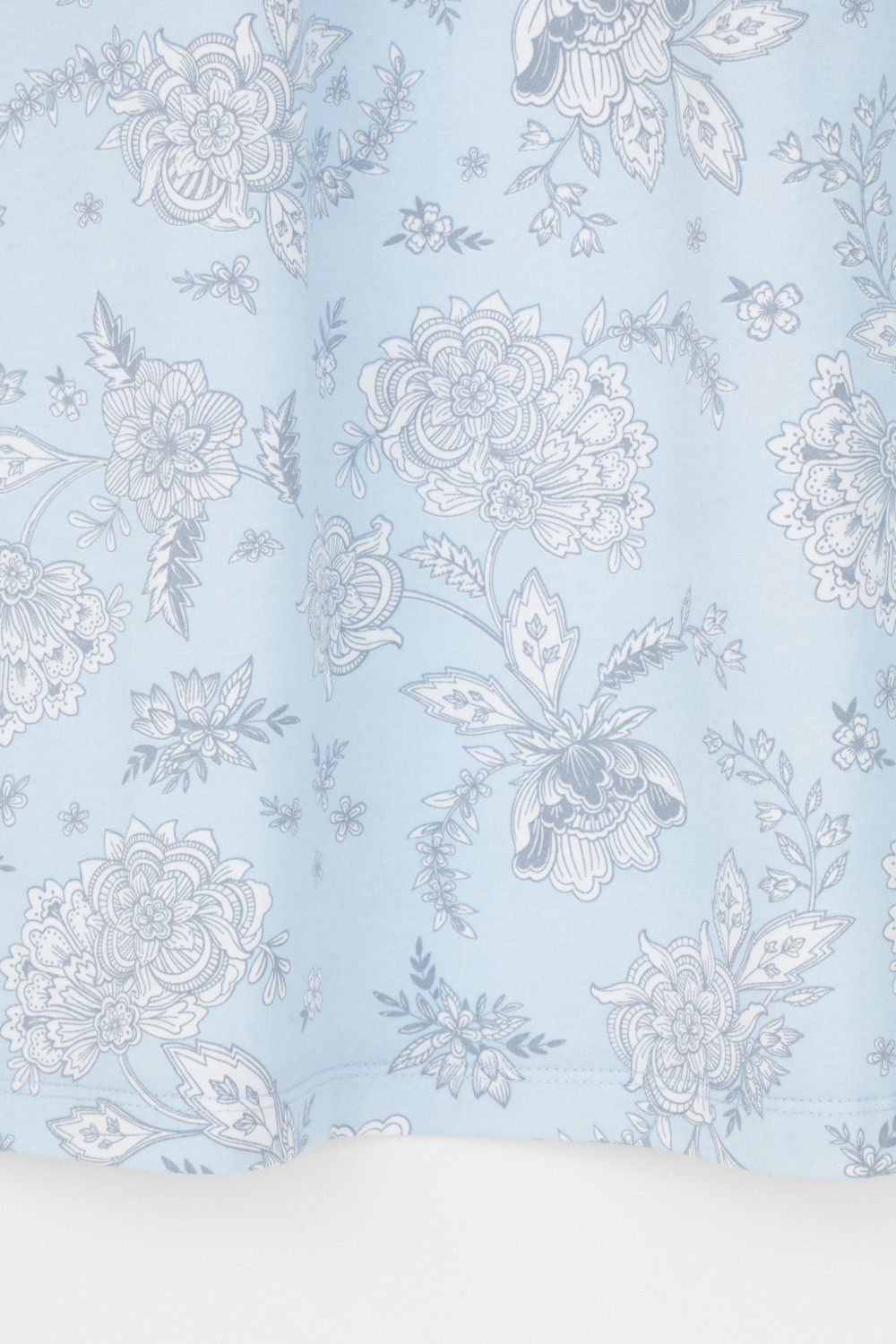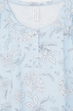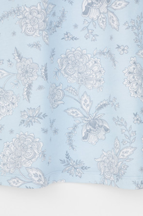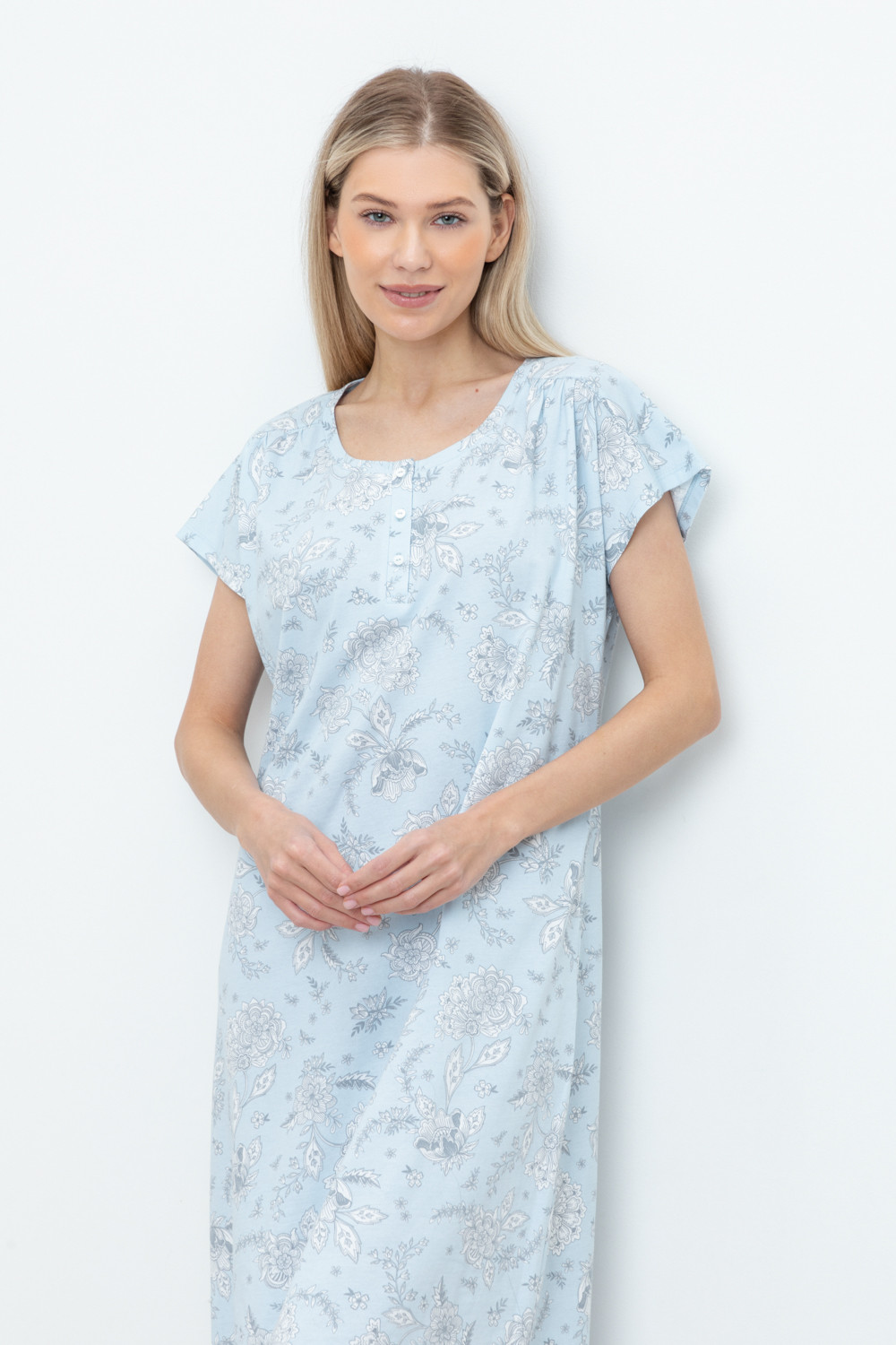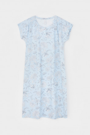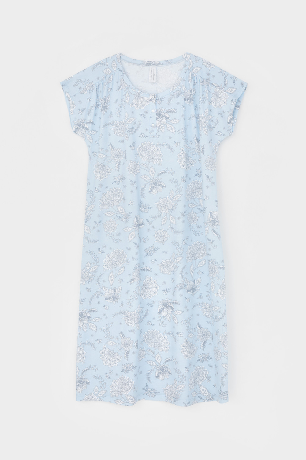 Уютная удлиненная сорочка с короткими рукавами из 100% натурального хлопка. Выполнена из набивного трикотажа супрем с нежным рисунком. На груди застегивается на пуговицы. Все трикотажные полотна производятся в соответствии с нормами Швейцарского сертификата ЭкоТекс. Сделано в России