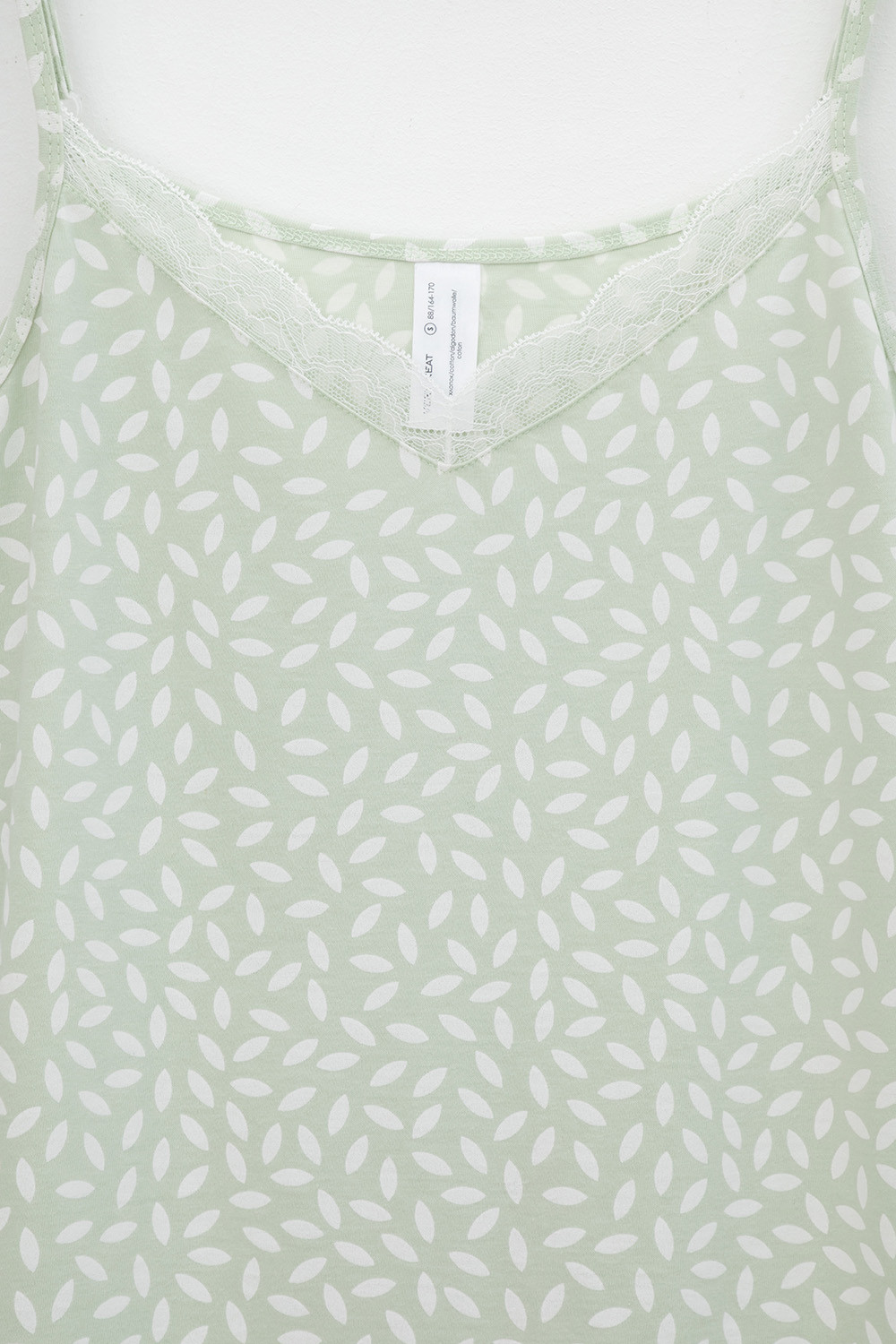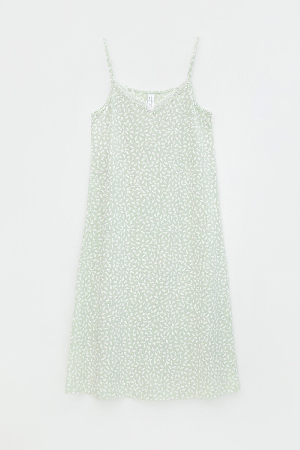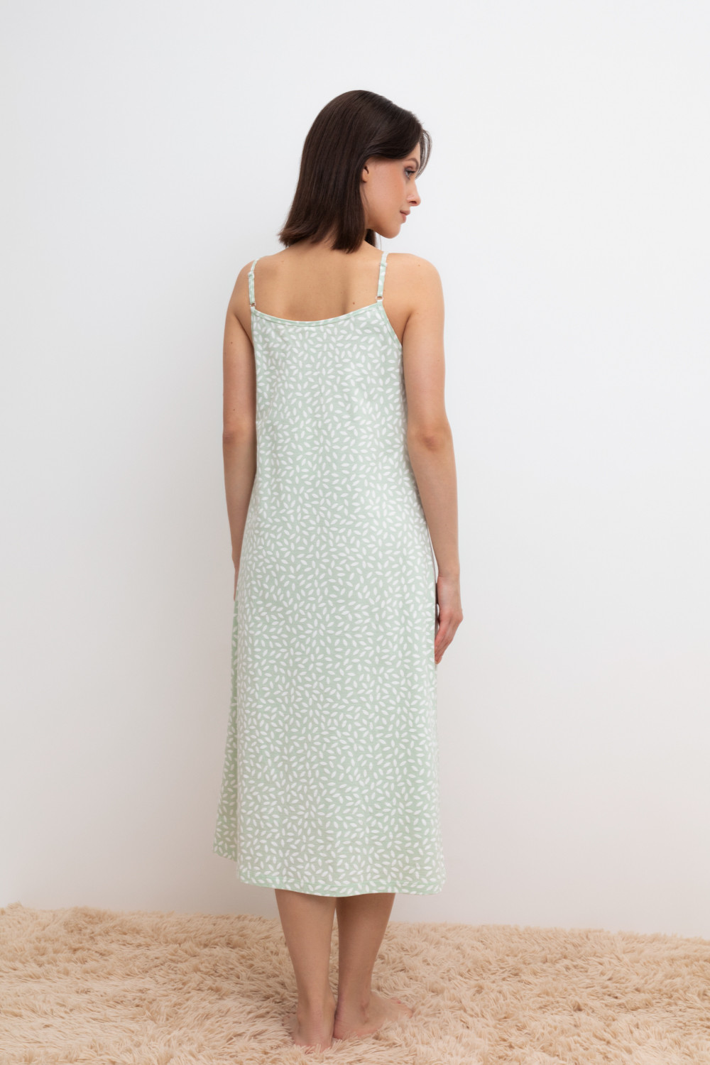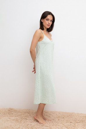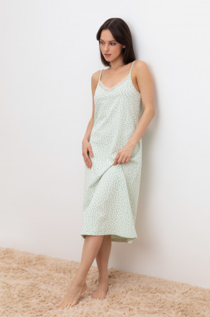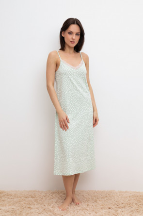 Элегантная сорочка на бретелях из 100% натурального хлопка для комфортного сна. Модель из трикотажного полотна супрем с набивным нежным рисунком с регулируемыми бретелями. На груди эластичное кружево. Гладкий материал приятен к телу и позволяет коже дышать.