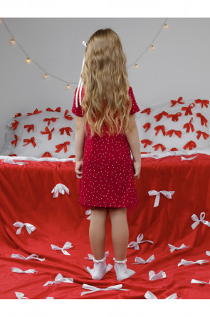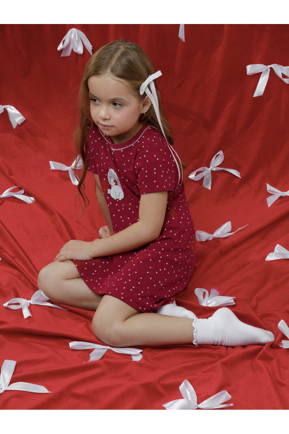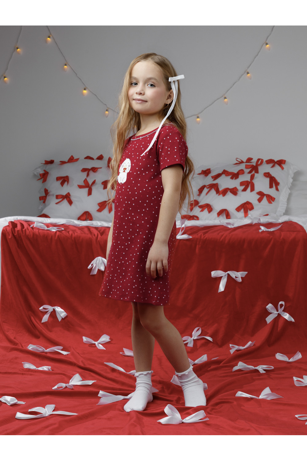 Сорочка с короткими втачными рукавами из натурального хлопка для девочки. Отлично подойдёт для создания уютных домашних образов или в качестве подарка на Новый год и Рождество. Оригинальная набивка и принт выполнены из стойких текстильных гипоаллергенных красителей. Изделие сохраняет цвет и форму после многократных стирок. Все трикотажные полотна производятся в соответствии с нормами швейцарского сертификата ЭкоТекс.