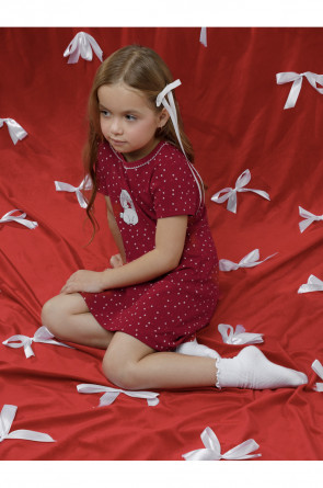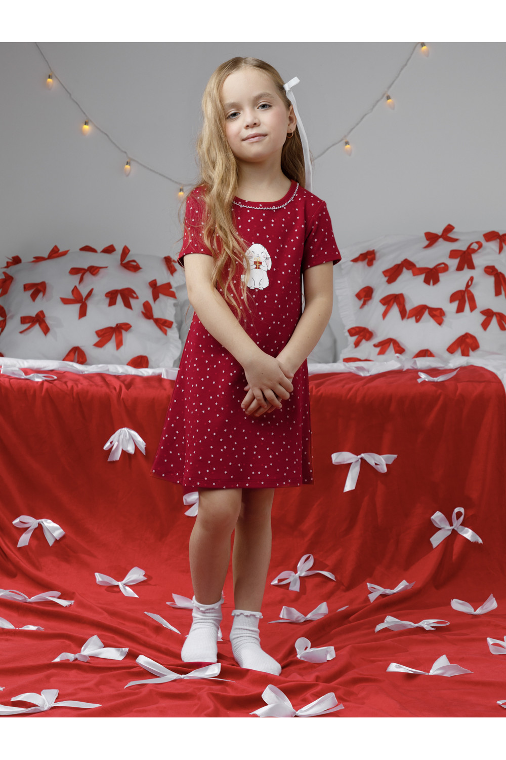 Сорочка с короткими втачными рукавами из натурального хлопка для девочки. Отлично подойдёт для создания уютных домашних образов или в качестве подарка на Новый год и Рождество. Оригинальная набивка и принт выполнены из стойких текстильных гипоаллергенных красителей. Изделие сохраняет цвет и форму после многократных стирок. Все трикотажные полотна производятся в соответствии с нормами швейцарского сертификата ЭкоТекс.