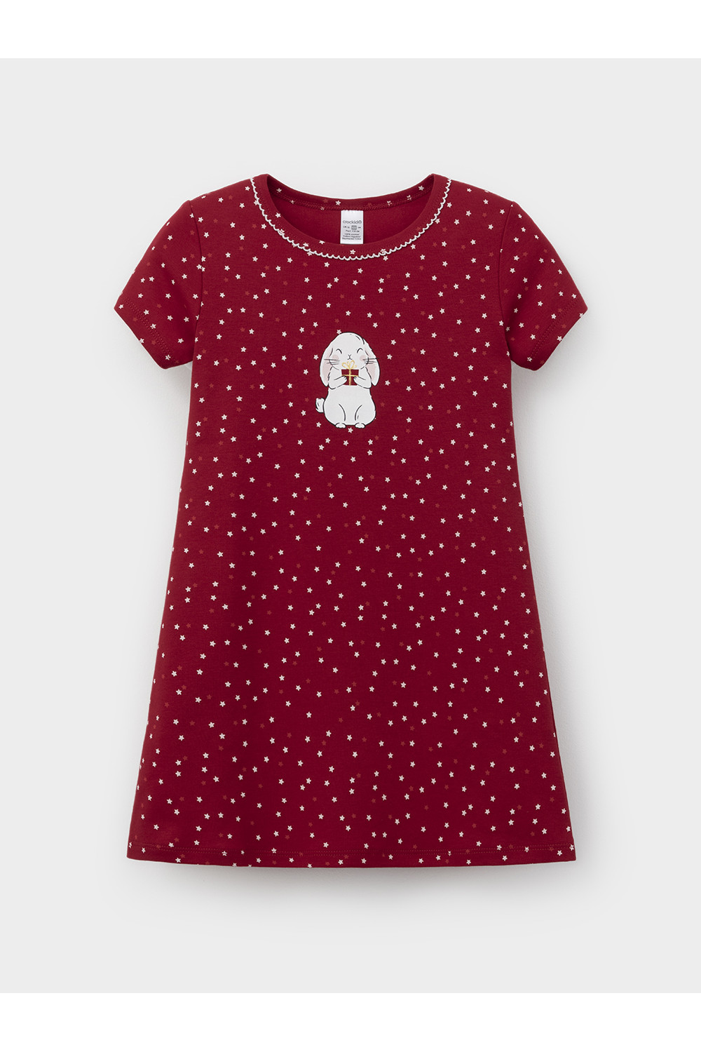 Сорочка с короткими втачными рукавами из натурального хлопка для девочки. Отлично подойдёт для создания уютных домашних образов или в качестве подарка на Новый год и Рождество. Оригинальная набивка и принт выполнены из стойких текстильных гипоаллергенных красителей. Изделие сохраняет цвет и форму после многократных стирок. Все трикотажные полотна производятся в соответствии с нормами швейцарского сертификата ЭкоТекс.