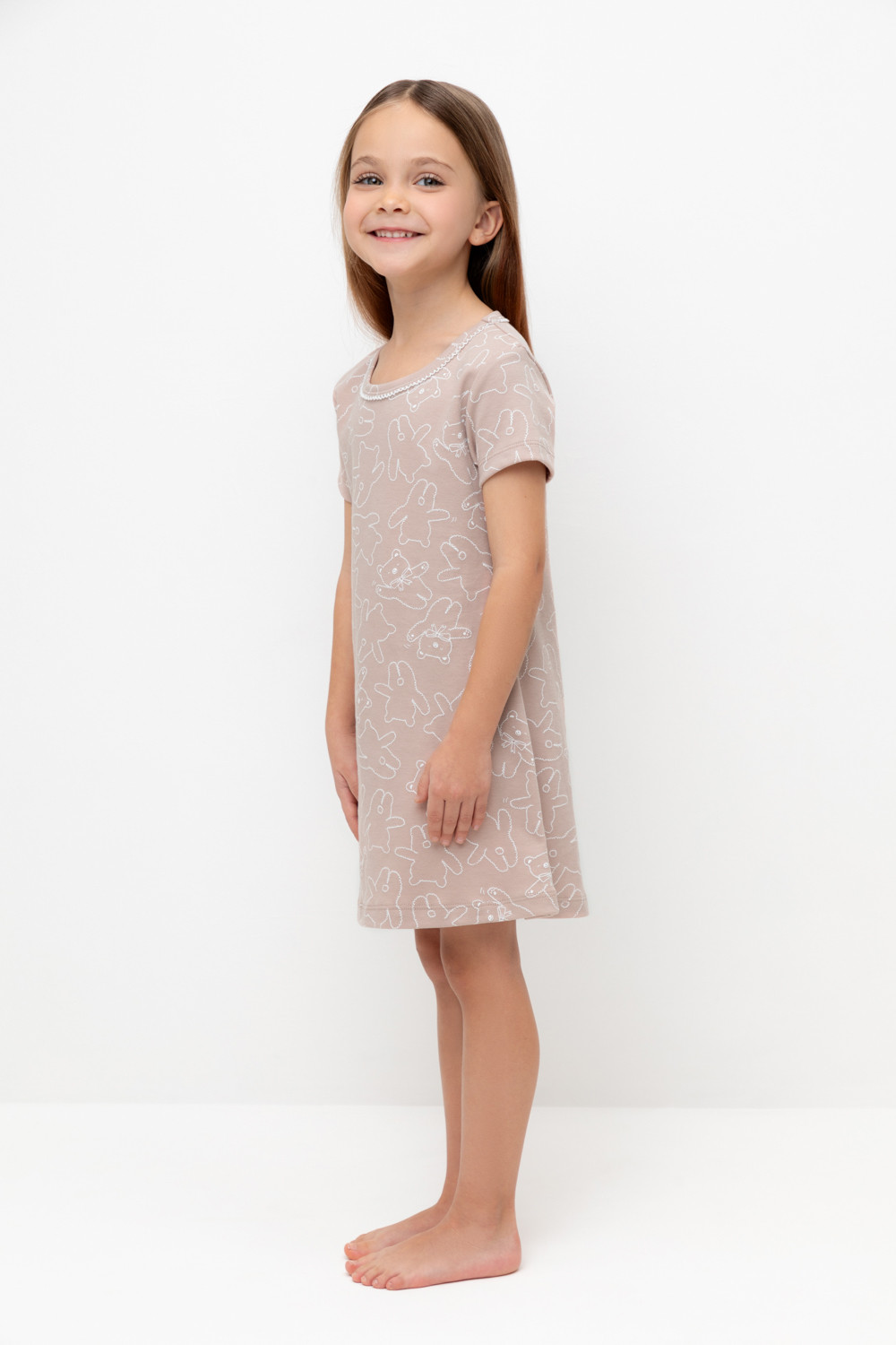 Сорочка из мягкого натурального хлопка с короткими втачными рукавами. Оригинальная набивка выполнена из стойких, гипоаллергенных текстильных красителей. Изделие сохраняет цвет и форму после многократных стирок. Все трикотажные полотна производятся в соответсвии с нормами Швейцарского сертификата ЭкоТекс.