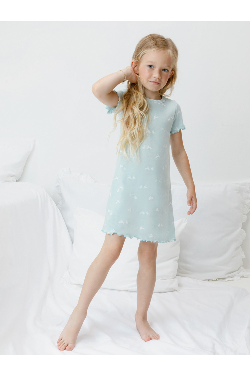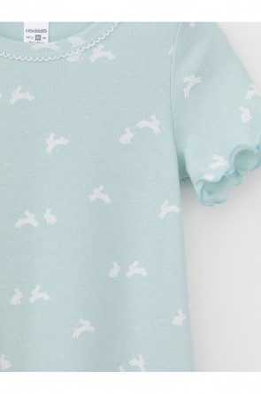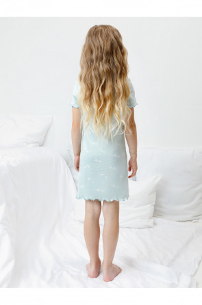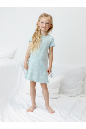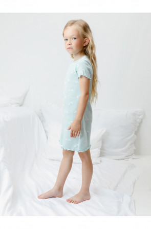 Сорочка с короткими втачными рукавами для девочки. Изготовлена из мягкого эластичного трикотажа в рубчик, произведённого из натурального хлопка. Оригинальная набивка выполнена из стойких гипоаллергенных текстильных красителей. Изделие сохраняет цвет и форму после многократных стирок. Все трикотажные полотна производятся в соответствии с нормами швейцарского сертификата ЭкоТекс.