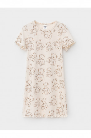 Сорочка с короткими втачными рукавами для девочки. Изготовлена из мягкого эластичного трикотажа в рубчик, произведённого из натурального хлопка. Оригинальная набивка выполнена из стойких гипоаллергенных текстильных красителей. Изделие сохраняет цвет и форму после многократных стирок. Все трикотажные полотна производятся в соответствии с нормами швейцарского сертификата ЭкоТекс.