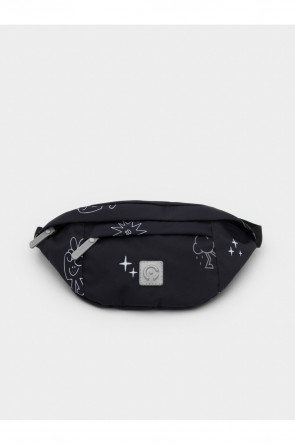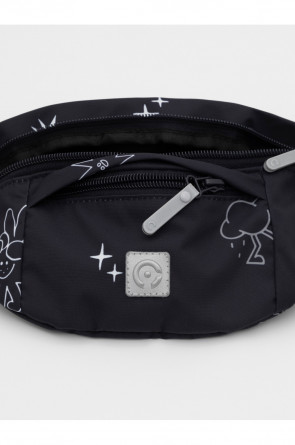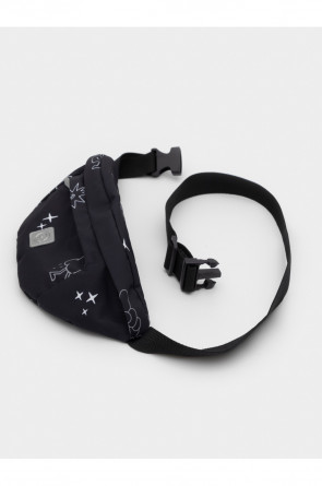 Детская сумка на ремне с набивным рисунком. Основное отделение и дополнительный карман закрываются на молнии. Можно носить на поясе или на плече. Ремень застёгивается с помощью пряжки и регулируется по длине. Светоотражающие элементы служат для дополнительной безопасности в тёмное время суток.