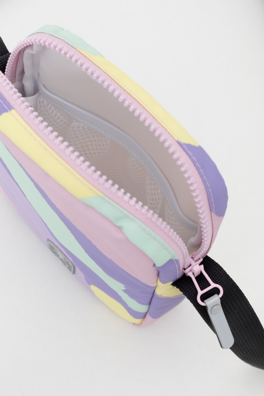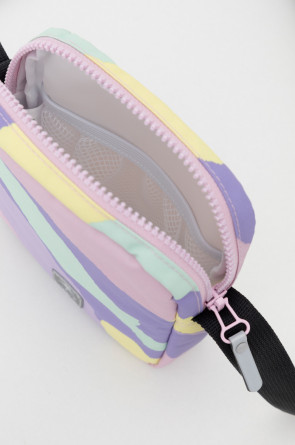 Детская сумка на ремне с набивным рисунком. Застегивается на молнию. Ремень регулируется по длине. Внутри карман из сетки. Светоотражающие элементы служат для дополнительной безопасности в темное время суток. Размер: 14,5х19см