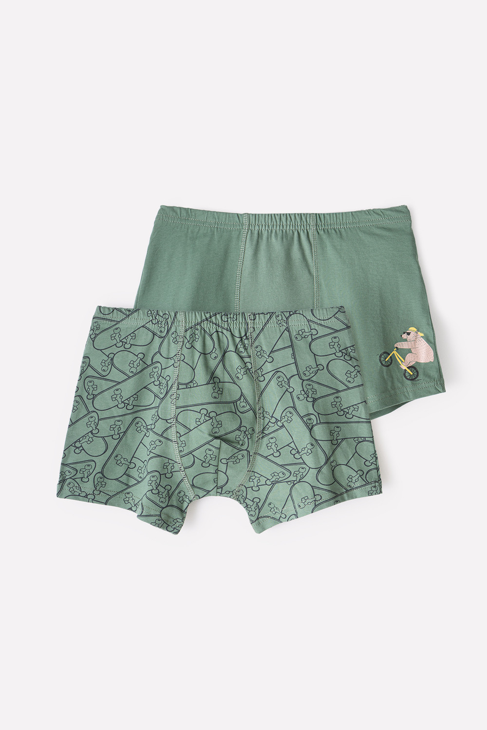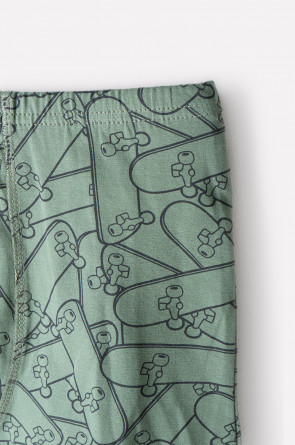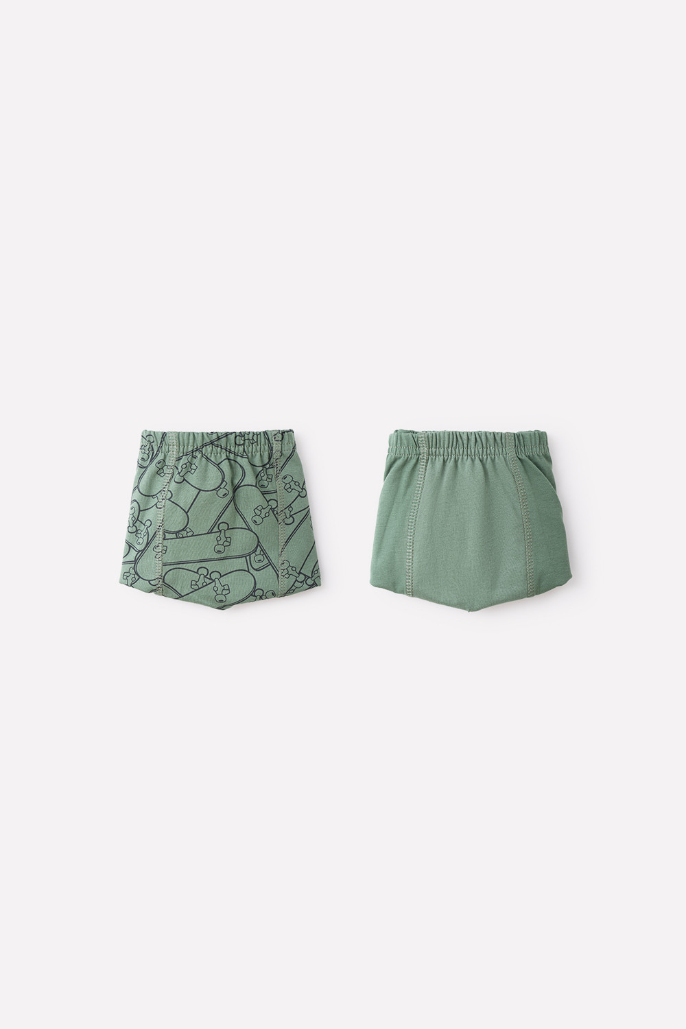 Подростковые трусы для мальчика. Сшиты из супрема с эластаном. В упаковке 2 шт: лесной мох с принтом + лесной мох с набивкой "скейты".