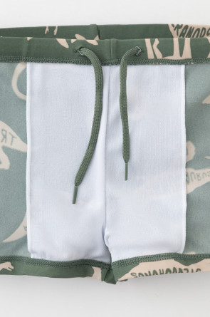 Плавки для мальчика с эластичной резинкой в поясе. Регулируются по ширине с помощью шнурка. Украшены набивным рисунком и принтом с логотипом.