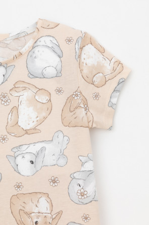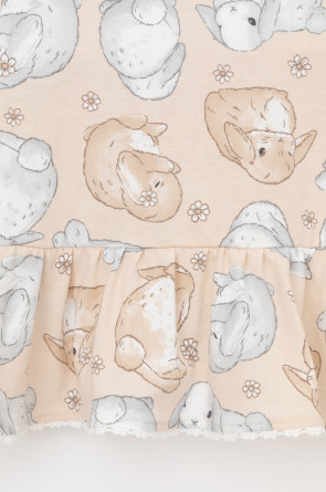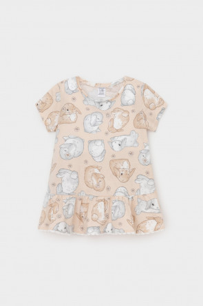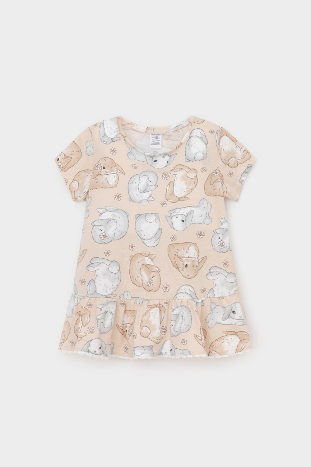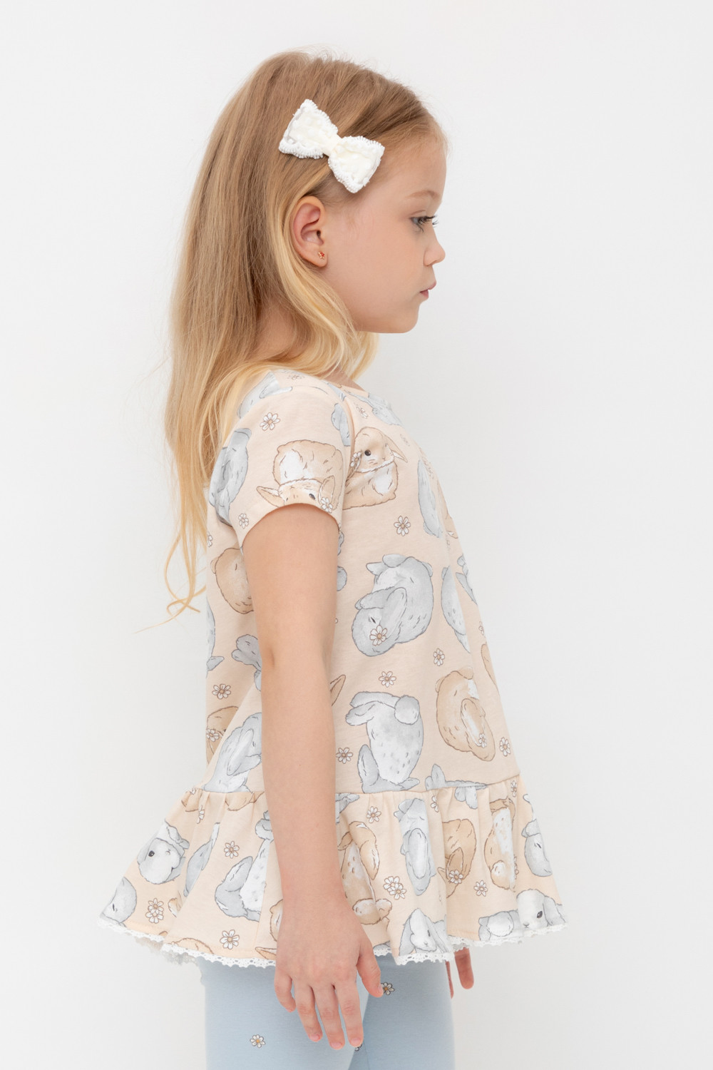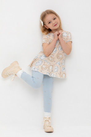 Легкая трикотажная туника для девочки из высококачественного хлопка. По низу украшена кружевом. Застёжка на плече в размерах 92 и 98. Оригинальная набивка выполнена из стойких текстильных гипоаллергенных красителей. Изделие сохраняет цвет и форму после многократных стирок.