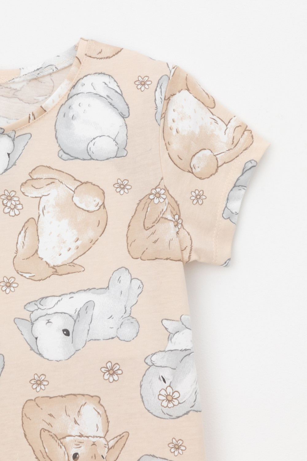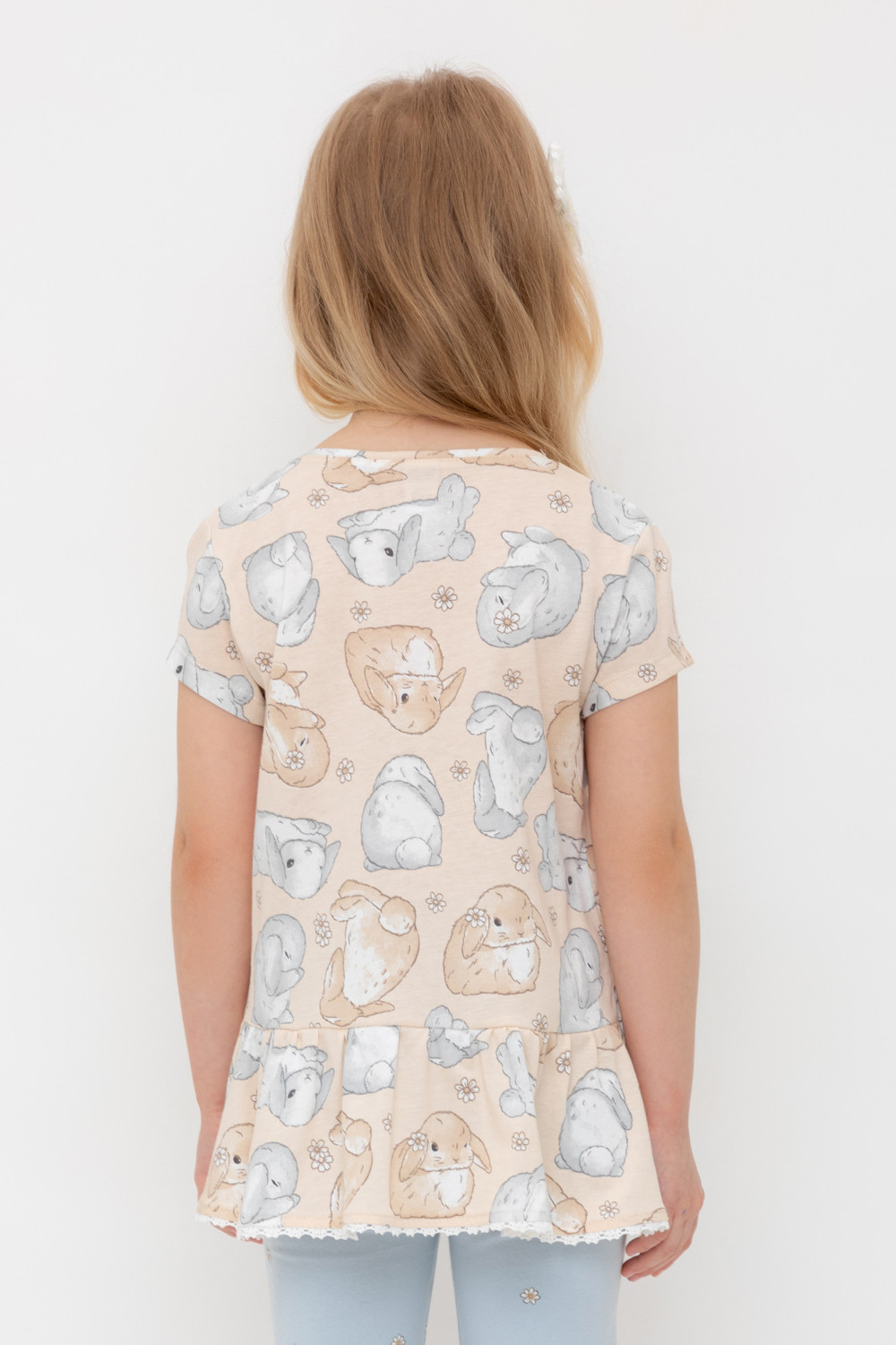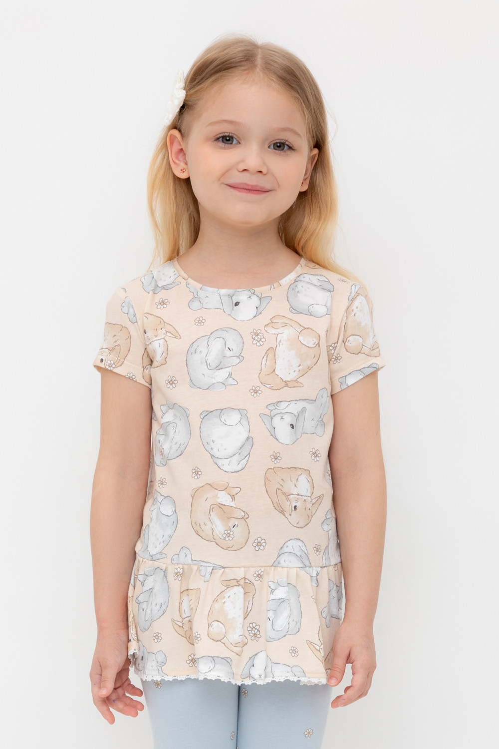 Легкая трикотажная туника для девочки из высококачественного хлопка. По низу украшена кружевом. Застёжка на плече в размерах 92 и 98. Оригинальная набивка выполнена из стойких текстильных гипоаллергенных красителей. Изделие сохраняет цвет и форму после многократных стирок.