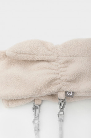 Флисовые варежки детские на шнурке. В области запястья вшита эластичная резинка. Варежки сохраняют цвет и форму после многократных стирок.
