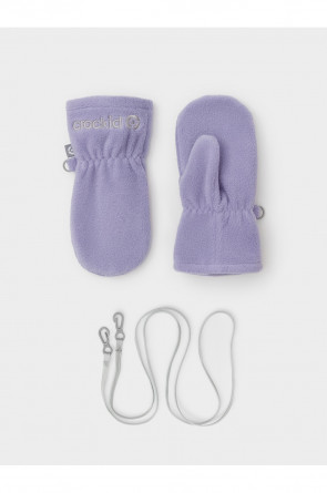 Флисовые варежки детские на шнурке. В области запястья вшита эластичная резинка. Варежки сохраняют цвет и форму после многократных стирок.
