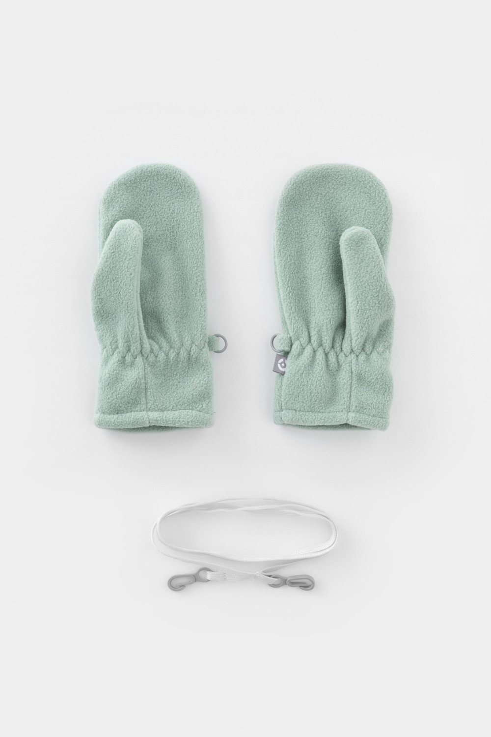Флисовые варежки на шнурке. В области запястья вшита эластичная резинка. Варежки сохраняют цвет и форму после многократных стирок.