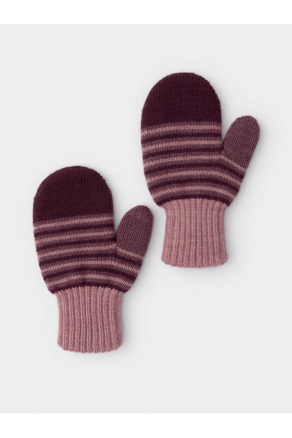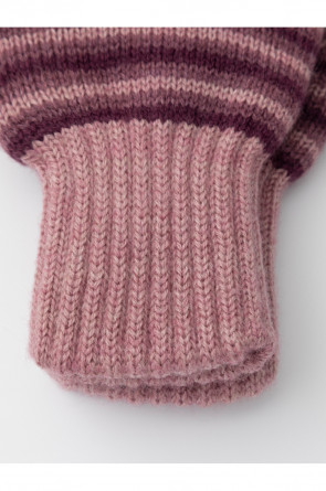 Варежки в полоску из полушерстяной пряжи. Эластичные манжеты фиксируют перчатку на руке.