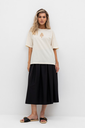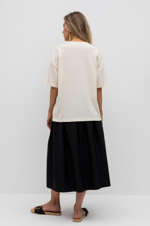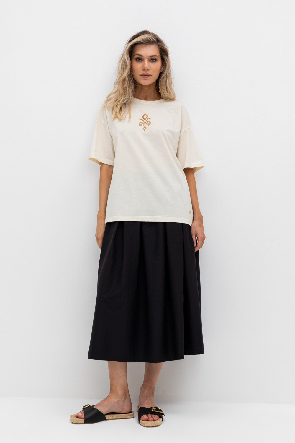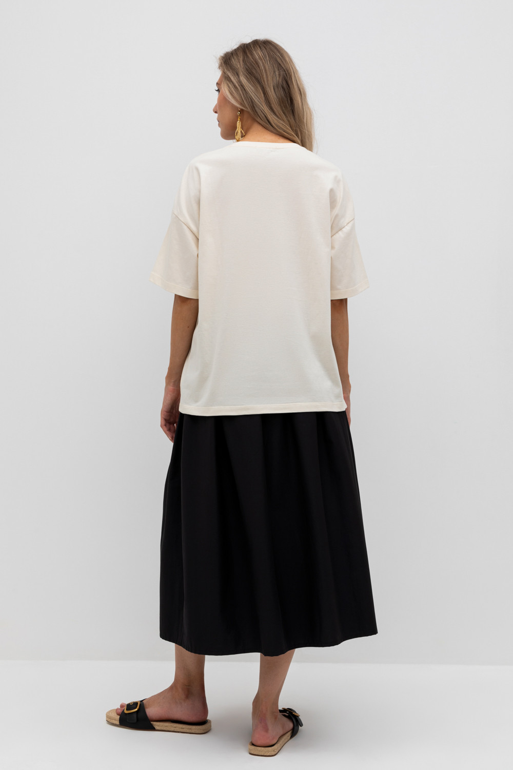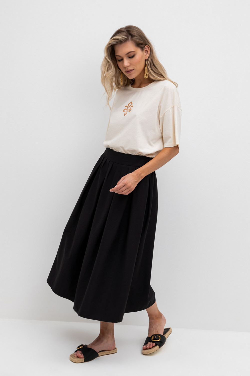 Юбка миди из смесового хлопка с добавлением эластана с широкими мягкими складками с карманами.