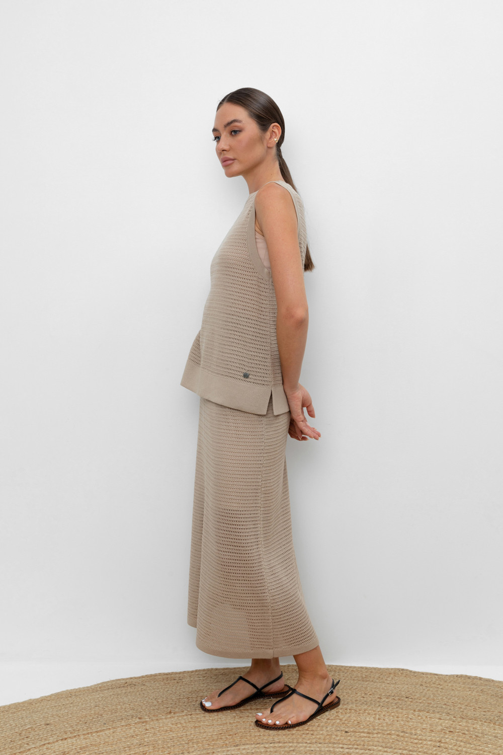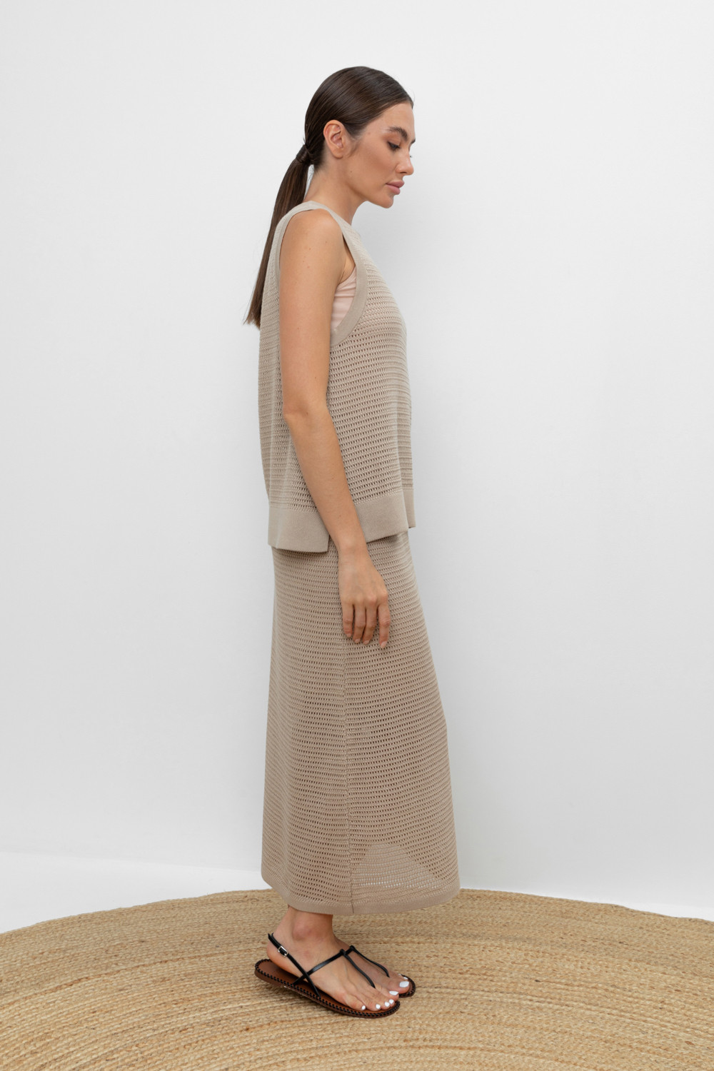Вязаная ажурная юбка макси с подкладом. Состав 50% хлопок, 50% акрил. Благодаря акрилу в составе изделие не пилингуется.