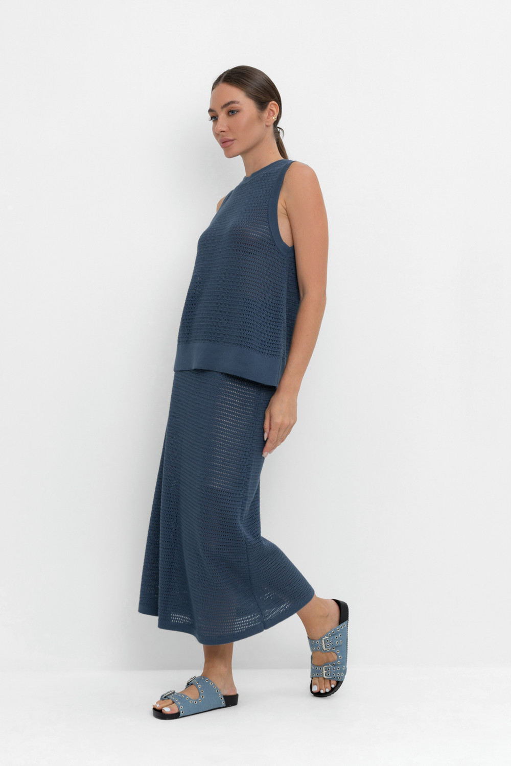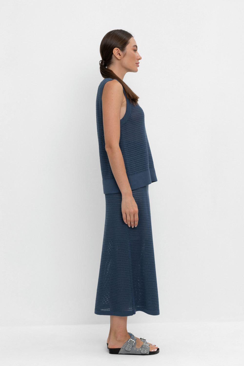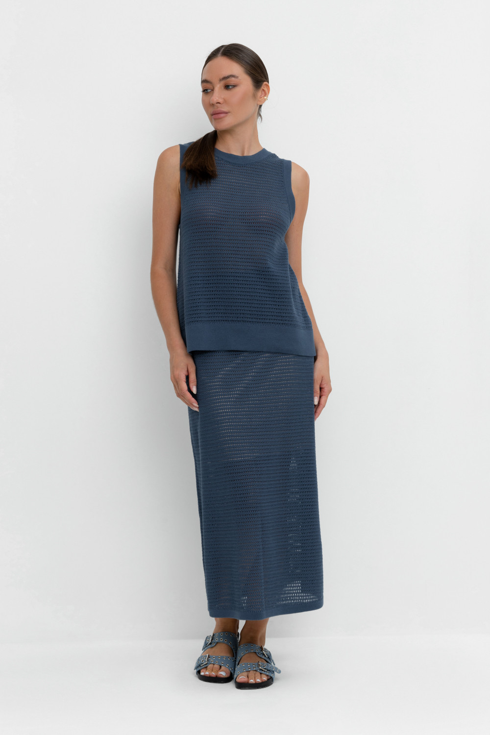 Вязаная ажурная юбка макси с подкладом. Состав 50% хлопок, 50% акрил. Благодаря акрилу в составе изделие не пилингуется.