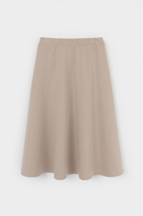 Трикотажная юбка длины миди из плотного гладкого трикотажа интерлок, произведенного из высококачественного гребенного хлопка. В составе 80% натурального хлопка и 20% полиэстера, при этом полиэстер ввязан внутрь по особой технологии и не соприкасается с кожей. Застегивается на потайную молнию. Изделие сохраняет цвет и форму после многократных стирок.