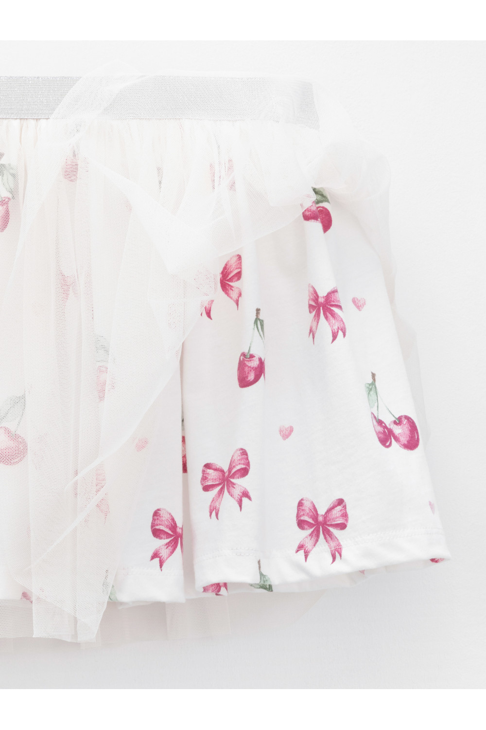 Лёгкая нарядная юбка для девочки. Основа юбки выполнена из высококачественного трикотажа, верхний слой — из сетки. Пояс на резинке. Изделие сохраняет цвет и форму после многократных стирок. Все трикотажные полотна производятся в соответствии с нормами швейцарского сертификата ЭкоТекс.