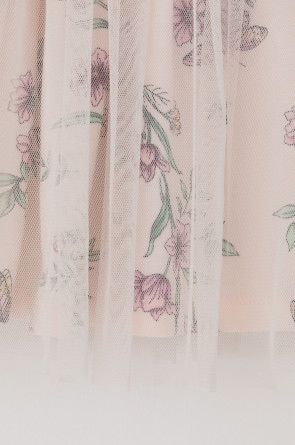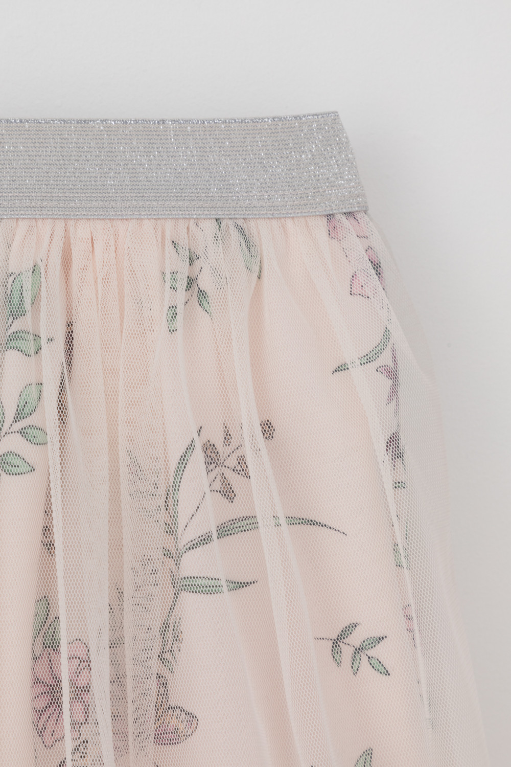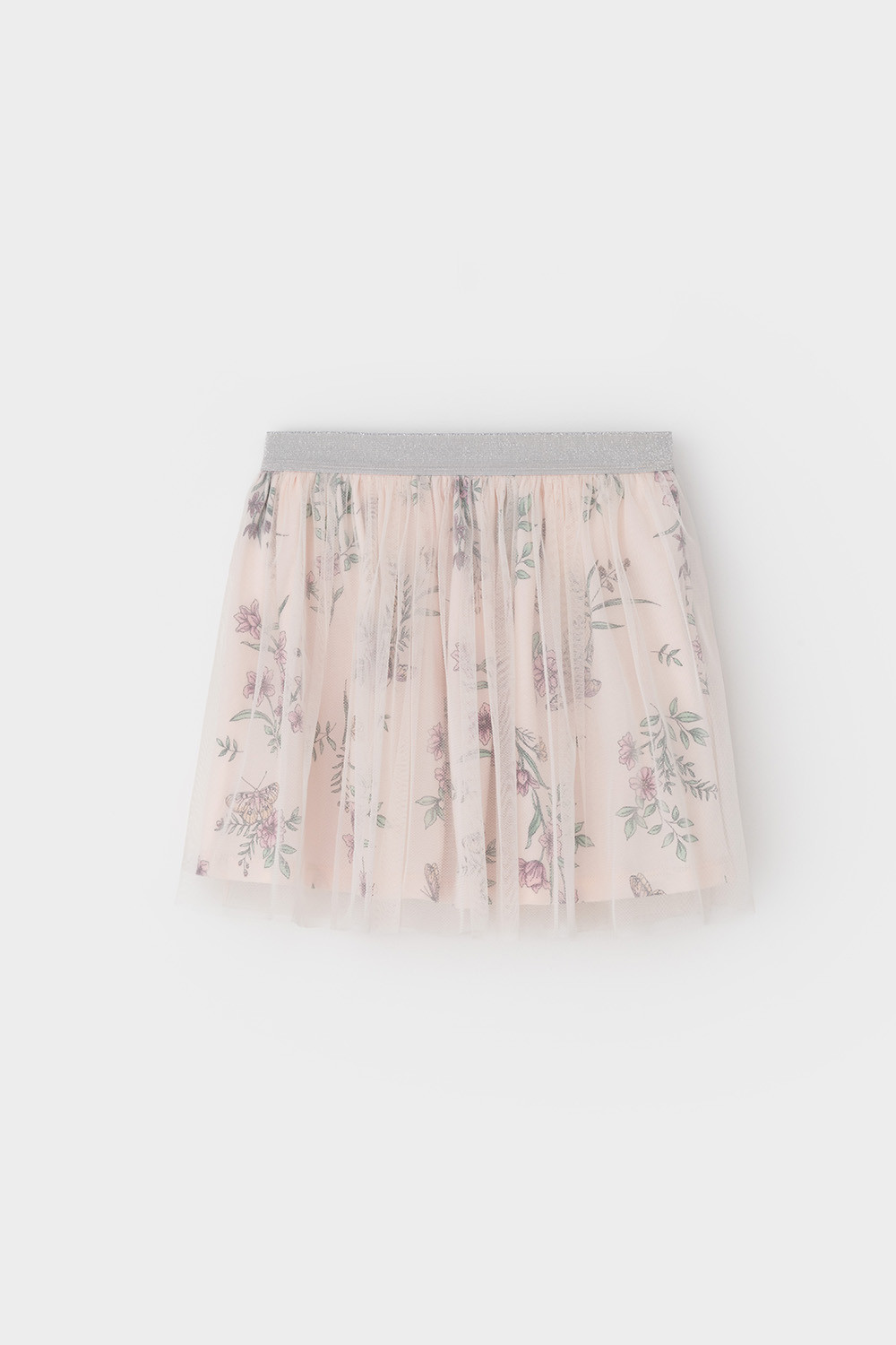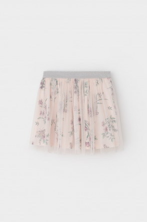 Легкая нарядная юбка для девочки. Основа юбки выполнена из высококачественного трикотажа, верхний слой - из сетки. Эластичный пояс изготовлен из эластичной резинки с люрексом.