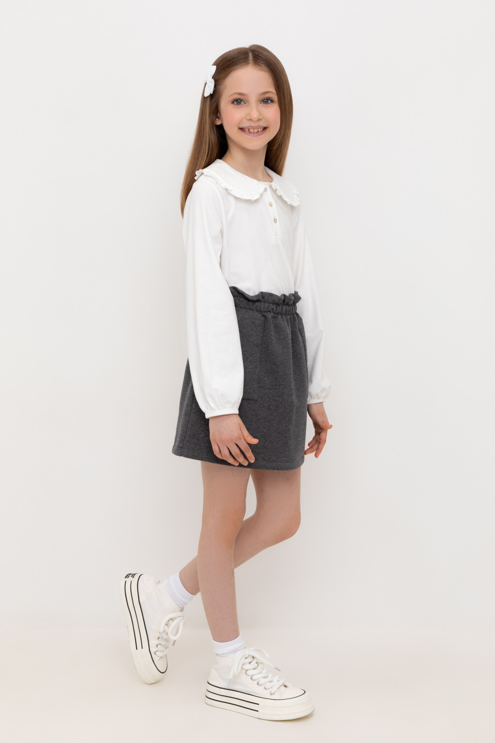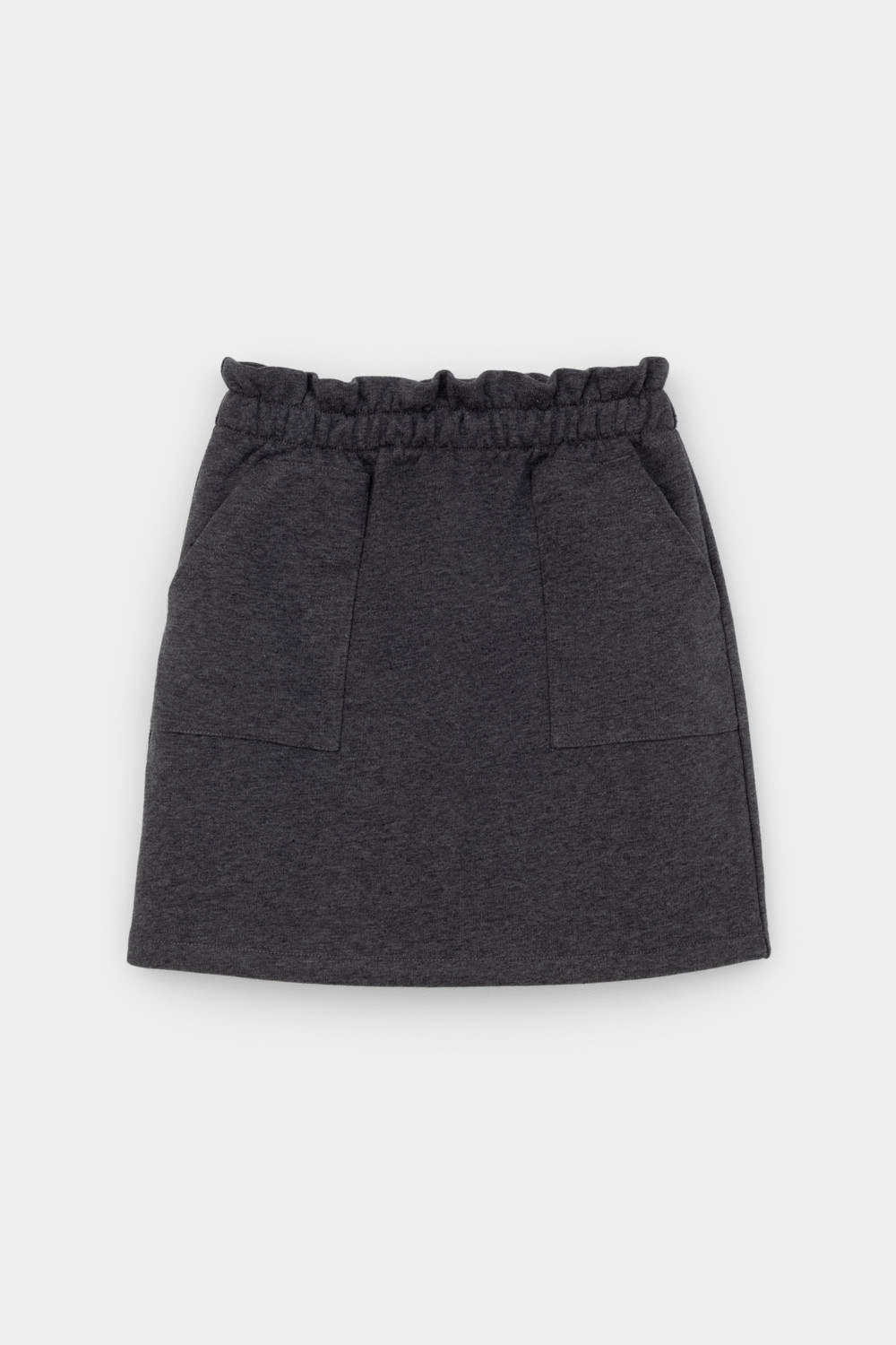 Юбка для девочки на резинке с накладными карманами из петельчатого футера.