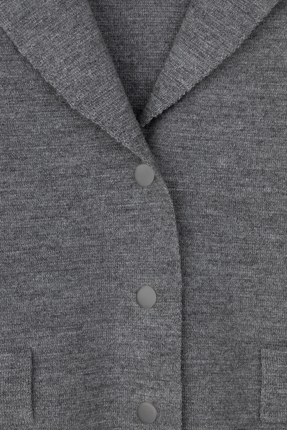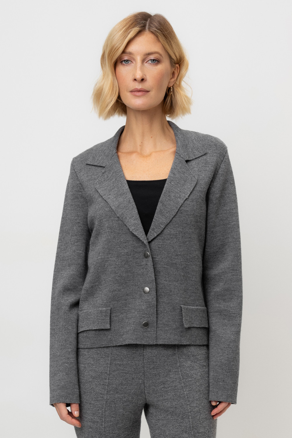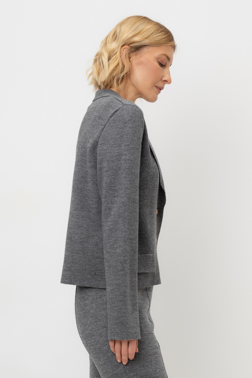 Женский укороченный жакет прямого кроя с имитацией карманов с клапаном, связан комбиниркой. Шерсть в составе сохраняет тепло, акрил делает изделие мягким. Прямой силуэт идеально подходит как к юбке, так и к брюкам.