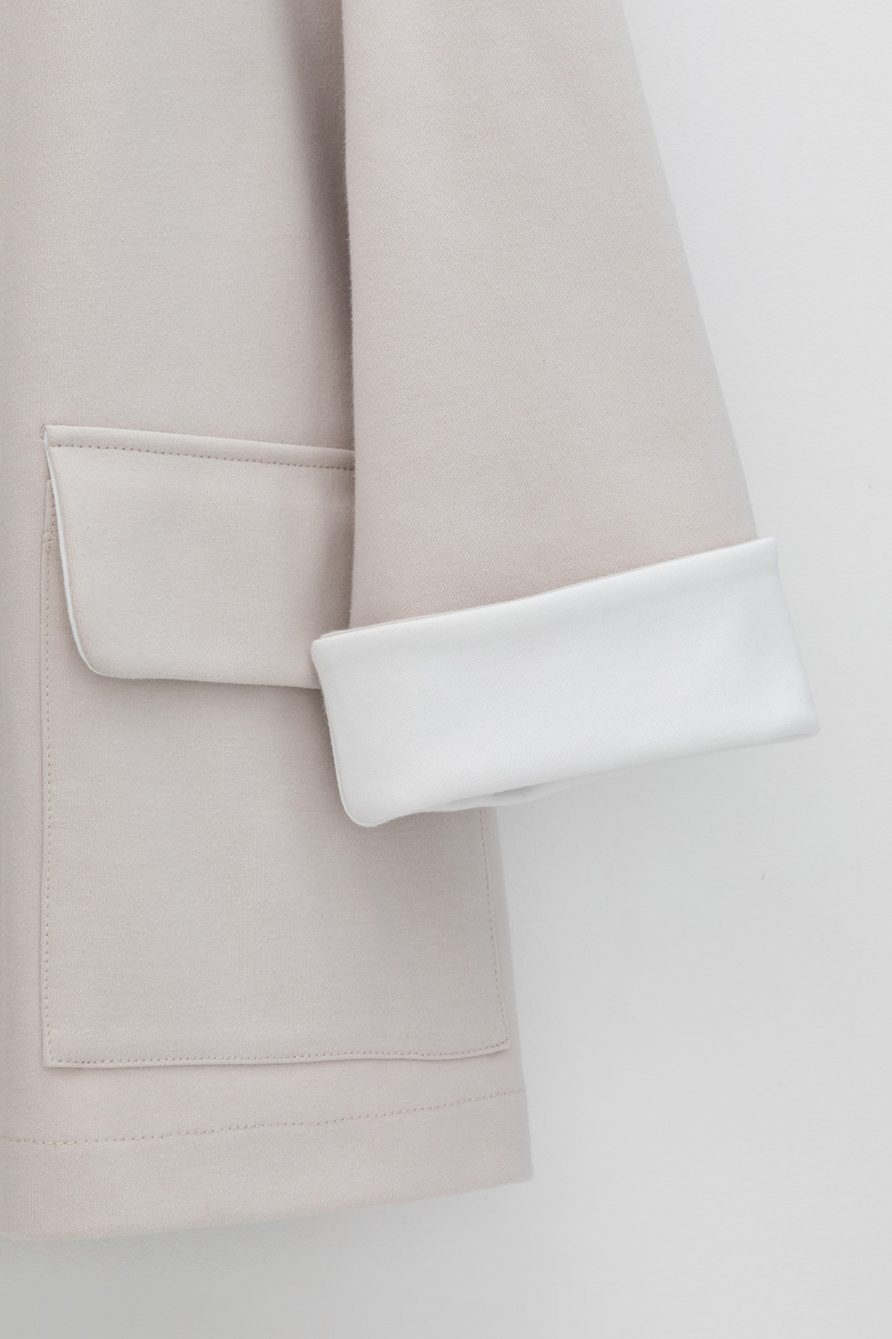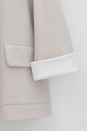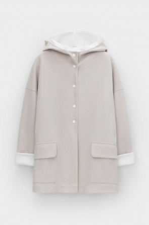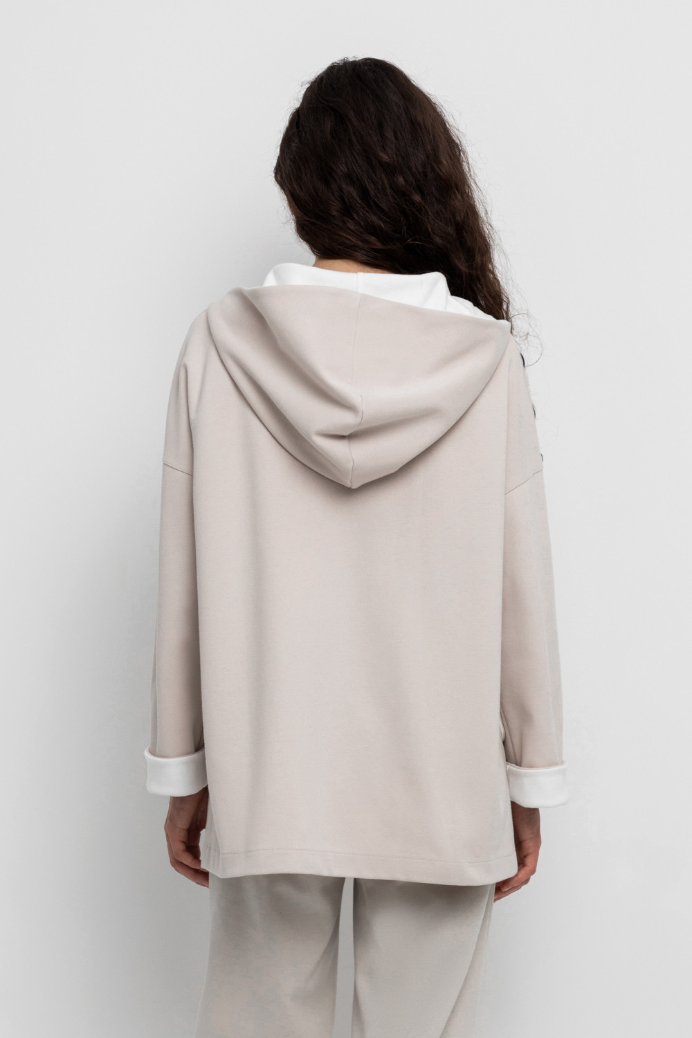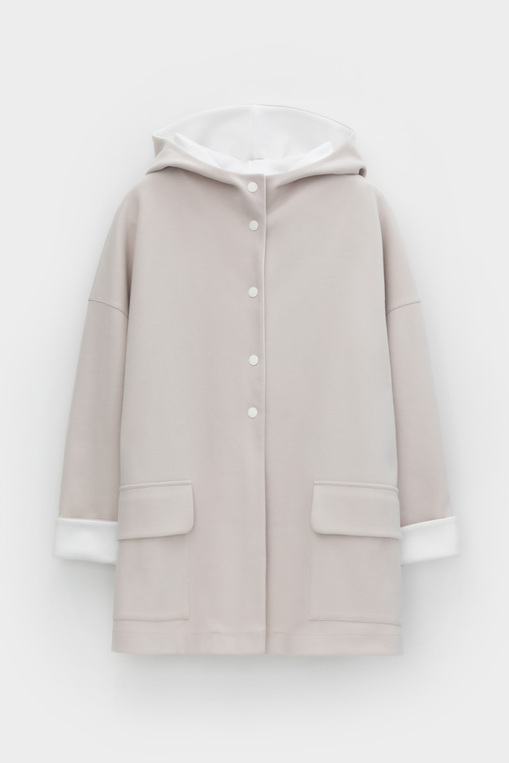 Женская куртка с капюшоном из плотного гладкого трикотажа интерлок со спандексом. Свободная модель с накладными карманами. Гладкий и плотный материал на основе хлопка сохраняет форму.