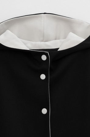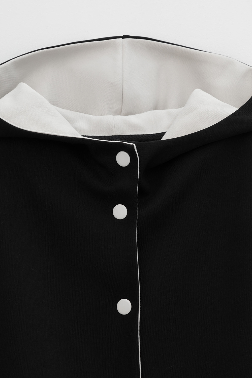 Женская куртка с капюшоном из плотного гладкого трикотажа интерлок со спандексом. Свободная модель с накладными карманами. Гладкий и плотный материал на основе хлопка сохраняет форму.