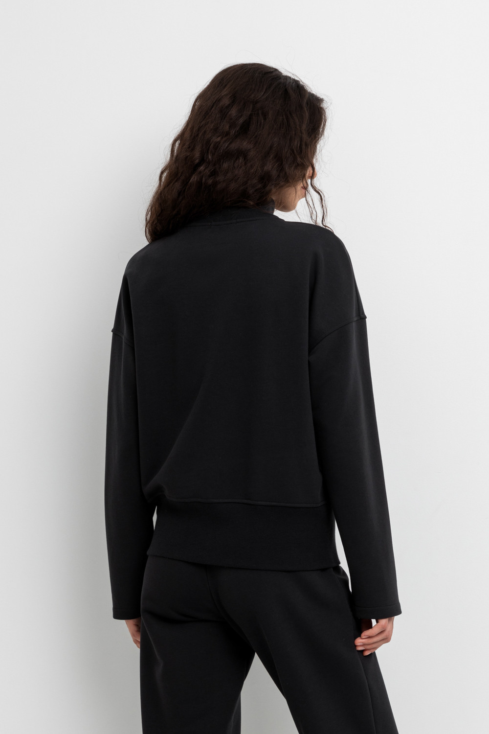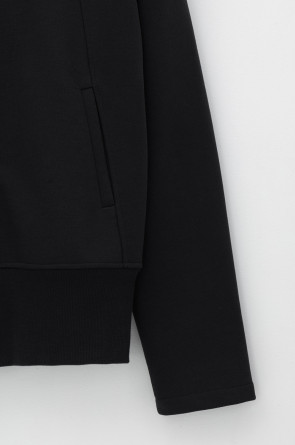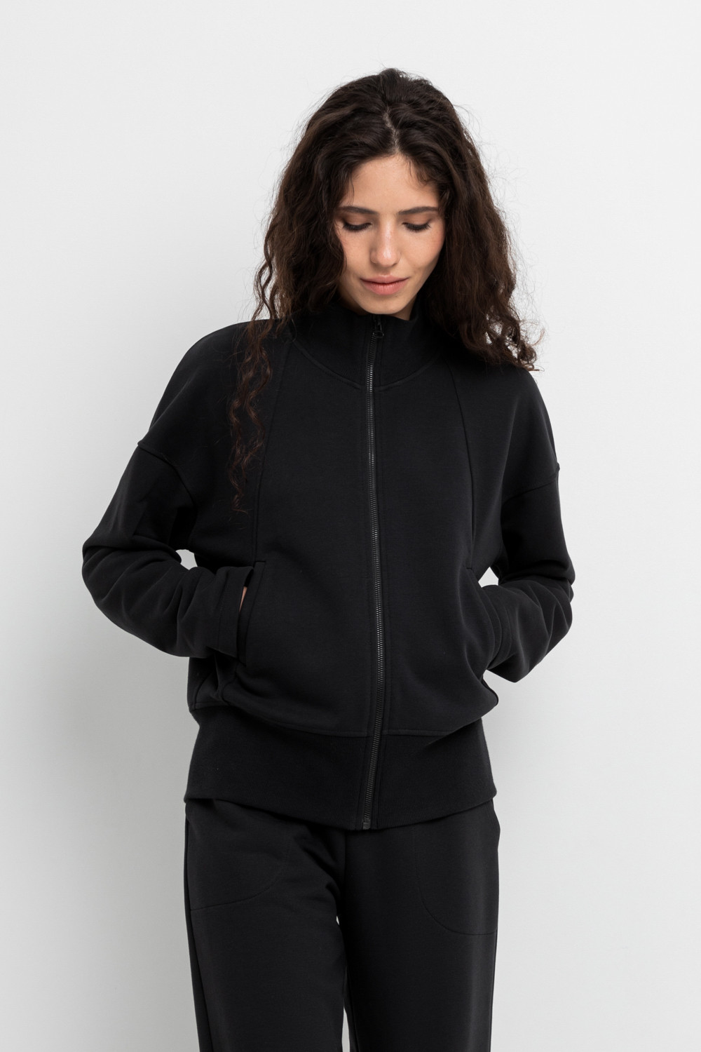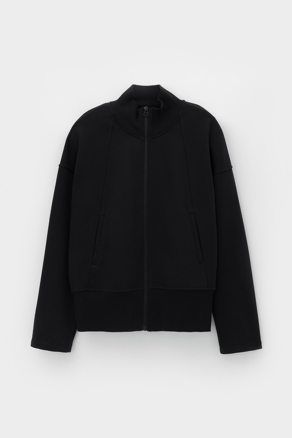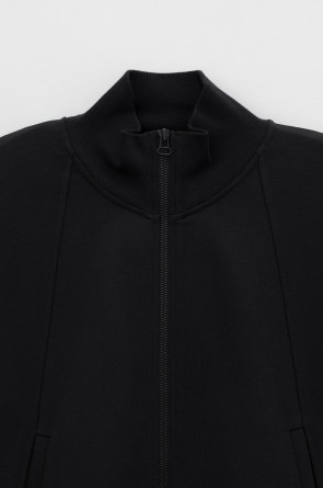 Тёплая трикотажная куртка на молнии с высоким воротником стойкой и широким поясом. Произведена из мягкого трикотажного футера трёхнитки. В составе 80% натурального хлопка и 20% полиэстера, при этом полиэстер ввязан внутрь по особой технологии и не соприкасается с кожей.