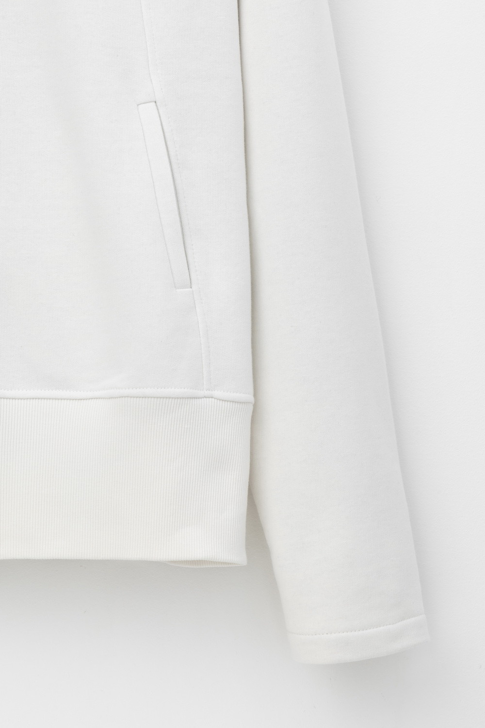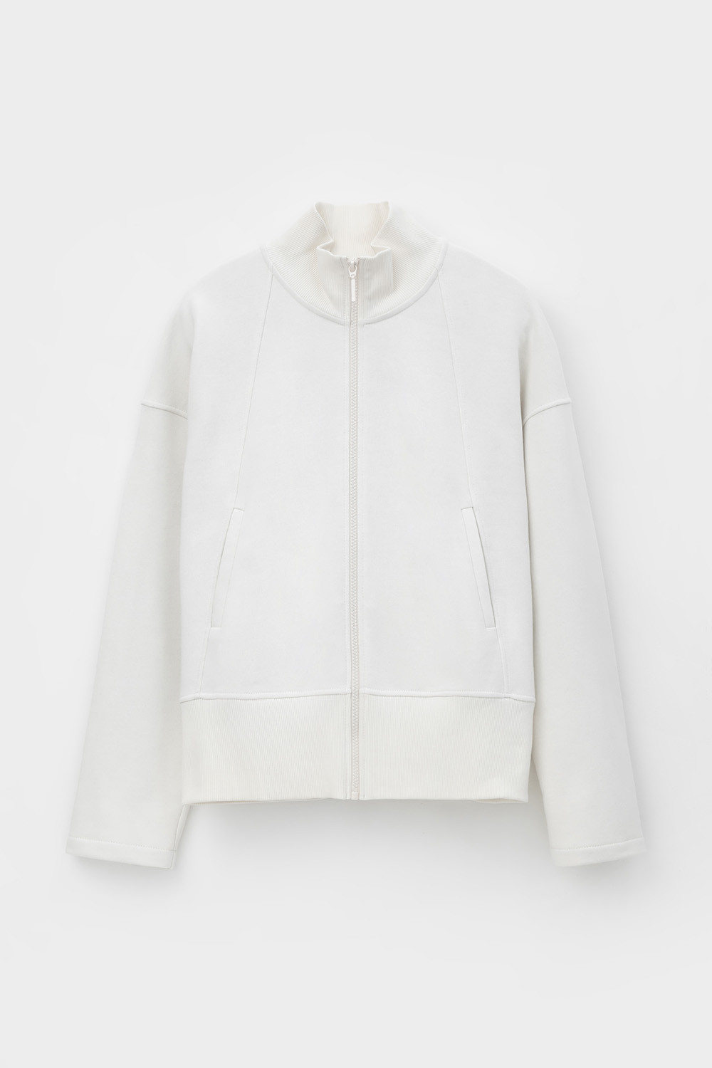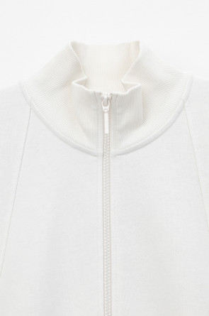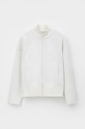 Тёплая трикотажная куртка на молнии с высоким воротником стойкой и широким поясом. Произведена из мягкого трикотажного футера трёхнитки. В составе 80% натурального хлопка и 20% полиэстера, при этом полиэстер ввязан внутрь по особой технологии и не соприкасается с кожей.