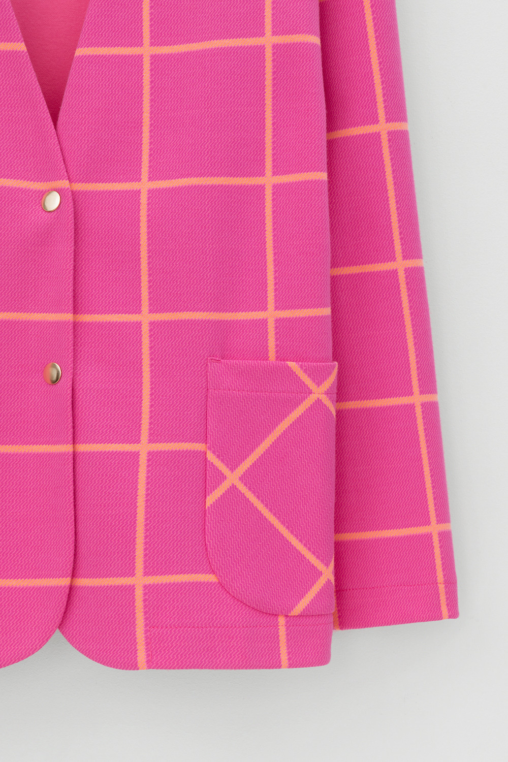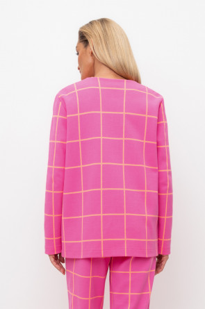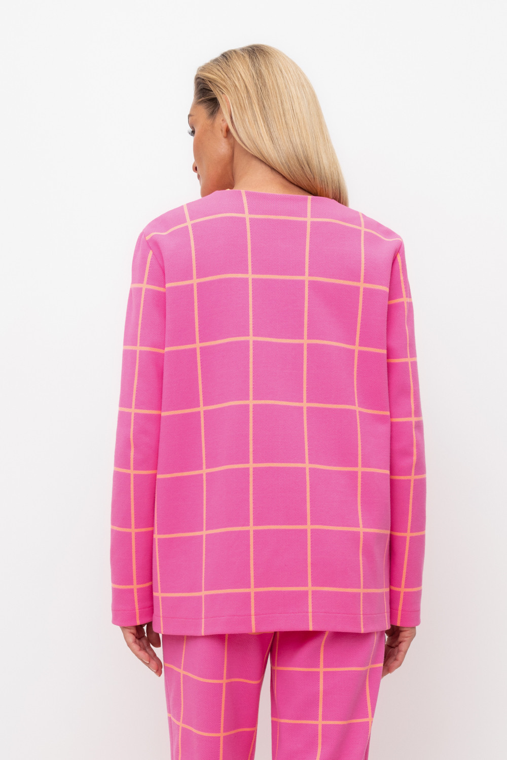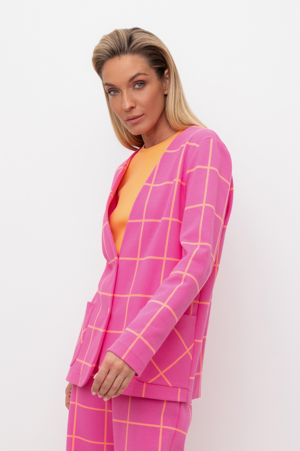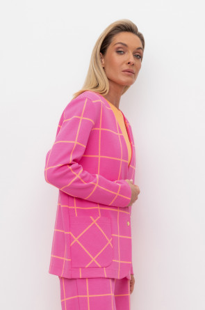Однобортный, прямой немного удлиненный жакет с застежкой на кнопки и двумя накладными карманами из плотного набивного гладкого трикотажа интерлок. Все трикотажные изделия производятся в соответствии с нормами Швейцарского сертификата ЭкоТекс. Сделано в России - 80% хлопок, 20% ПЭ